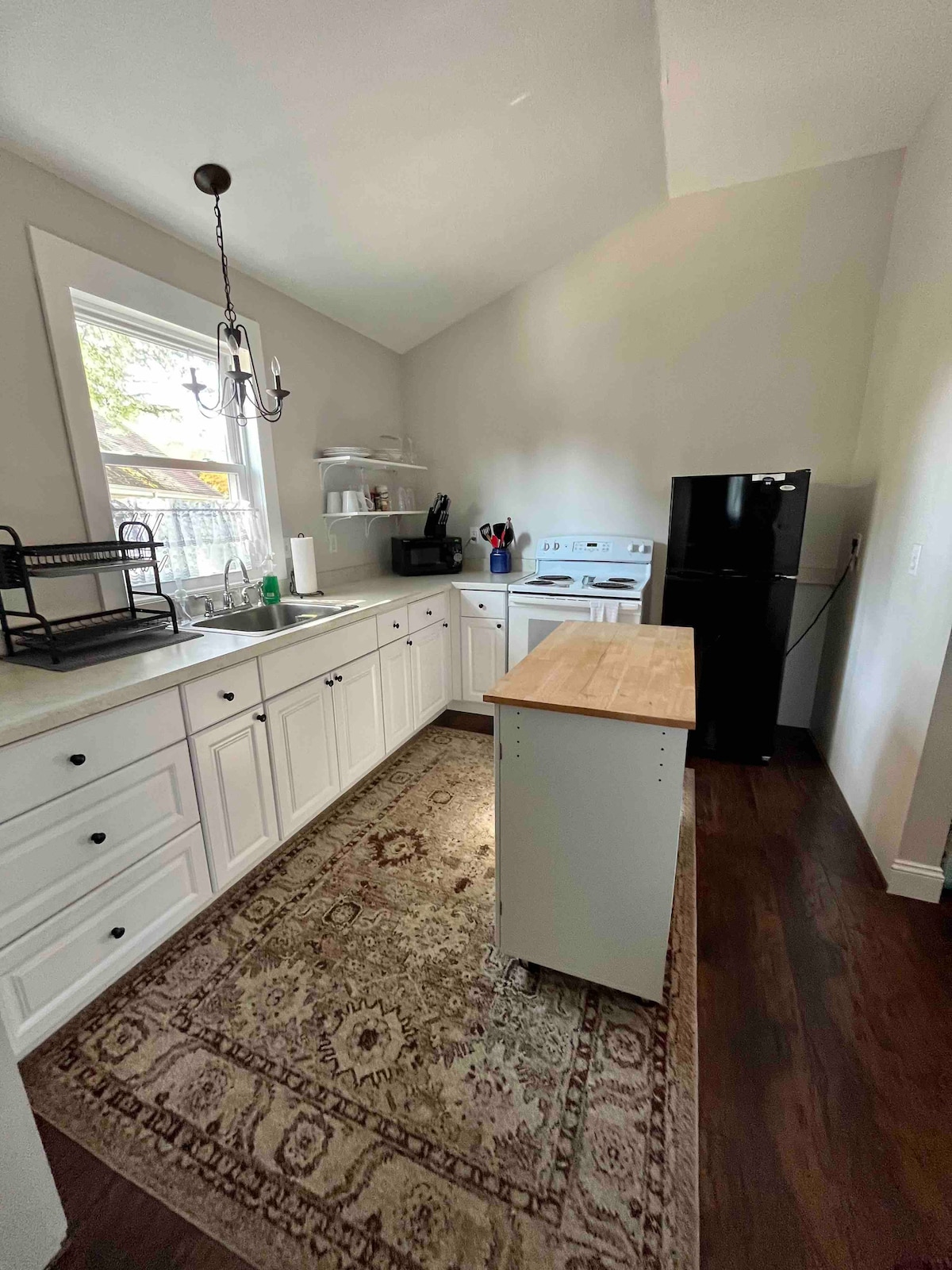 The apartment is above a detached garage. The spacious floor plan is modern and fresh, on-site laundry, a full kitchen, walk-in closet and large private bathroom, this apartment feels just like home. Long term lease is available for a discounted rate. The apartment is located on a busy street (“busy” for a small town) you will hear cars and motorcycles drive by. Please take this into consideration when booking.
