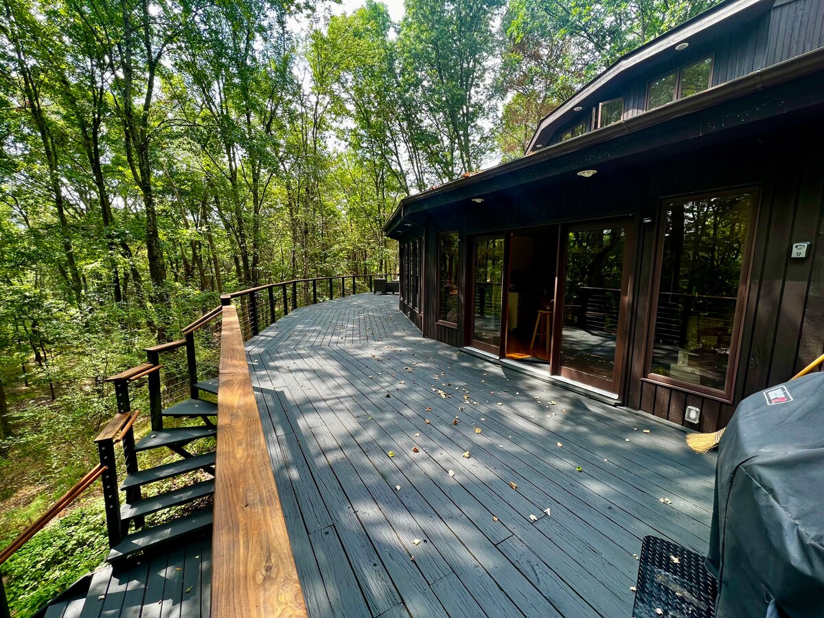 Tief in unserer Psyche liegt ein romantisches Bild, das eines Blockhauses im Wald, das über einem plätschernden Bach mit Forellen thront. Vielleicht gibt es drinnen einen Schaffellteppich vor einem großen Kamin, eine Leseecke und ein verträumtes Loft für Kinder. Oder vielleicht bist du draußen auf der Terrasse, an einem frischen Morgen gebündelt und nippst an Kakao in einem Schaukelstuhl, oder Nächte, in denen du deine müden Knochen einweichen lässt und die Geräusche des Baches und der Kinder unten, die Smores am Feuer rösten, aufnimmst. Jetzt kannst du diesen Traum wahr werden lassen!