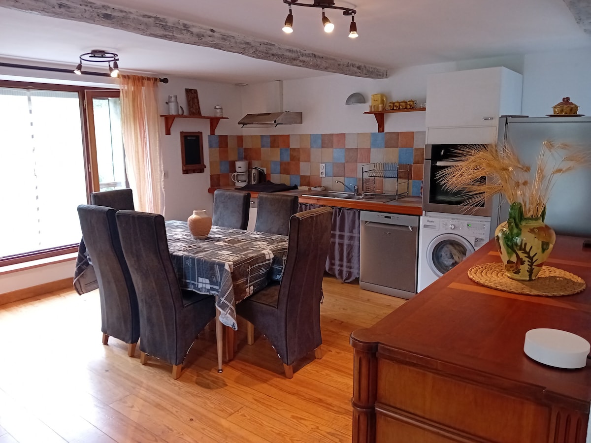 Located outside a small, quiet hamlet (altitude 800 metres) at the end of a winding road, the south-facing barn enjoys panoramic views of the mountains, and is surrounded by fields and woods - with no vis-à-vis! Entirely renovated using ecological materials, the gîte retains all the charm and authenticity of a Pyrenean dwelling, but with all the comfort of a purpose-built gite. The barn caters to everybody – couples, solos, families with children, and walkers with their four-legged friends.