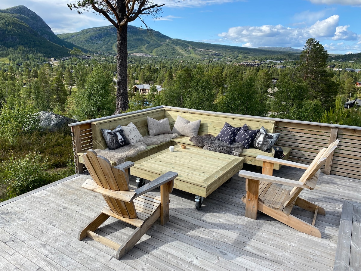 Willkommen in Hovdenutvegen 15 - einer reichen und schönen Hütte mit großartiger Ski-in- und Ski-out-Lage! Die Hütte ist perfekt für die aktive und Ski-Familie, da man kein Auto braucht, um zur Slalompiste oder Langlaufloipe zu gelangen - bequem für Jung und Alt. Das Anwesen bietet auch ausreichend Platz im Freien, sowohl für Outdoor-Aktivitäten als auch für Parkplätze, und grenzt an eine Grünfläche davor. Breite und schöne Aussicht auf die Berge im Osten und Sonne ab dem frühen Morgen!