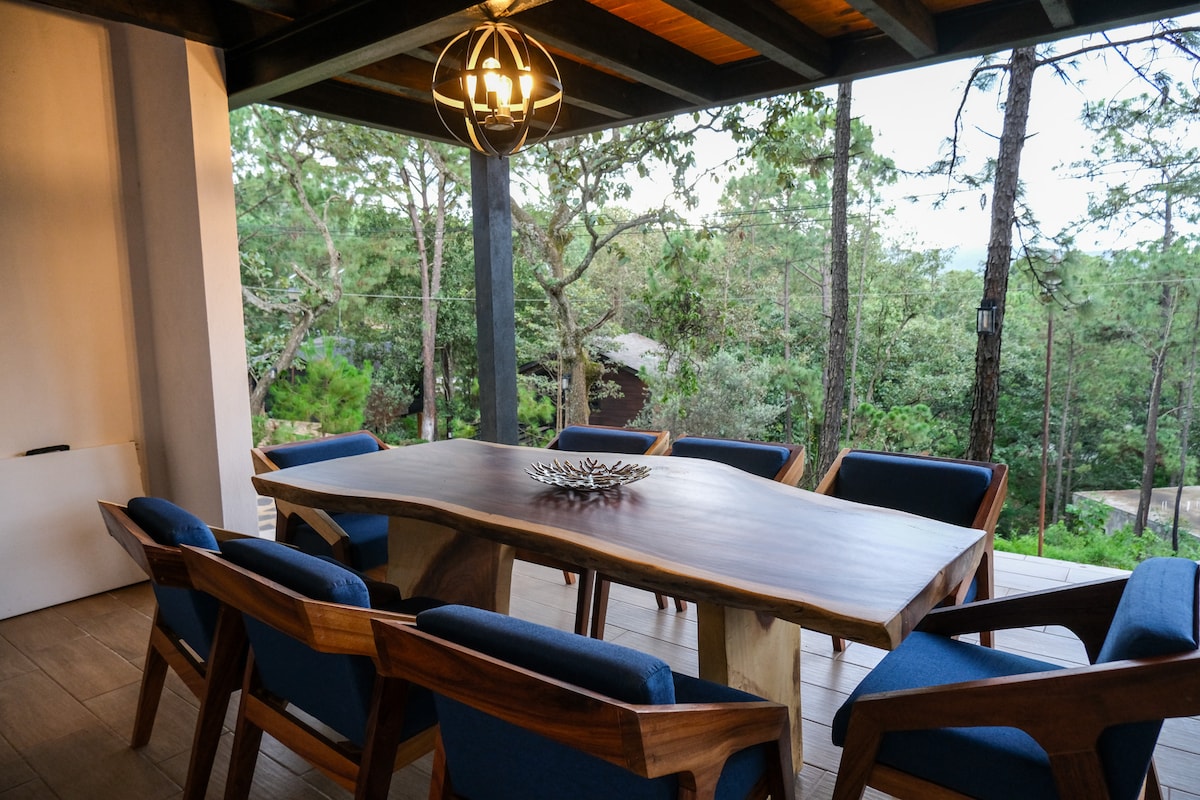 Die Cabaña Turemsa befindet sich im magischen Dorf Mazamitla, Jalisco. Es ist eine schöne, voll ausgestattete Loft-Suite inmitten des Waldes, umgeben von alten Eichen, schöner Aussicht und sauberer Luft in der Wohnsiedlung Paso del Ciervo, in Mazamitla Jalisco. Das Design mit großen Fenstern und luxuriösen Oberflächen wird deinen Aufenthalt zu einem unvergesslichen Erlebnis machen, um dich wieder mit der Natur zu verbinden.