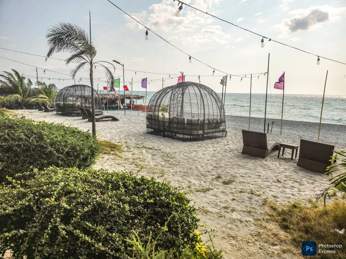 Dieser trendige Ort bietet viele charmante Details Resort direkt am Strand. Fein Sand. Riesige Küste. Unberührtes Wasser