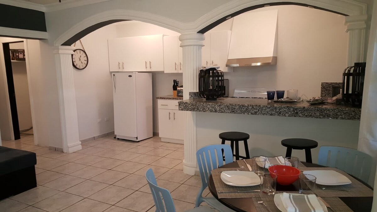 Immerse yourself into our newly renovated two bedrooms two bathrooms apt in the heart of Sosua. It is just 2 mins walking to a private beach. On-site, you will have a personal property manager to assist you with all your needs, laundry and a cafe. It is ideal for long-term stays as it is fully furnished.