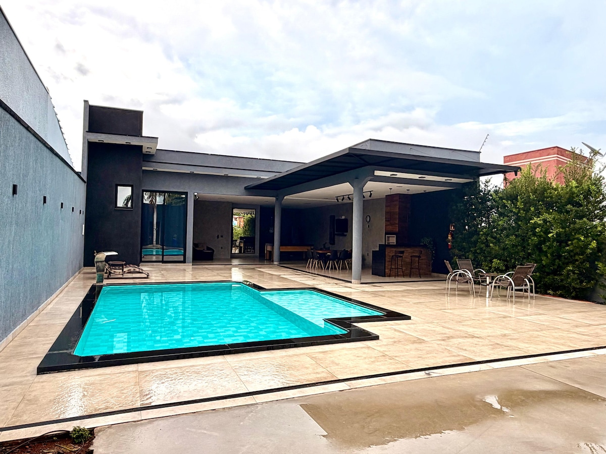 🏡 Casa completa com piscina e área gourmet! 📍 Ótima localização (perto de mercado, farmácia e posto) ✔ 2 suítes ✔ Sala de TV com ar-condicionado + Smart TV com Netflix ✔ Área gourmet com churrasqueira ✔ Piscina iluminada ✔ Cozinha completa ✔ Garagem para 2 carros pequenos ou 1 caminhonete ✨ Perfeita para descansar e aproveitar bons momentos. Reserve agora!