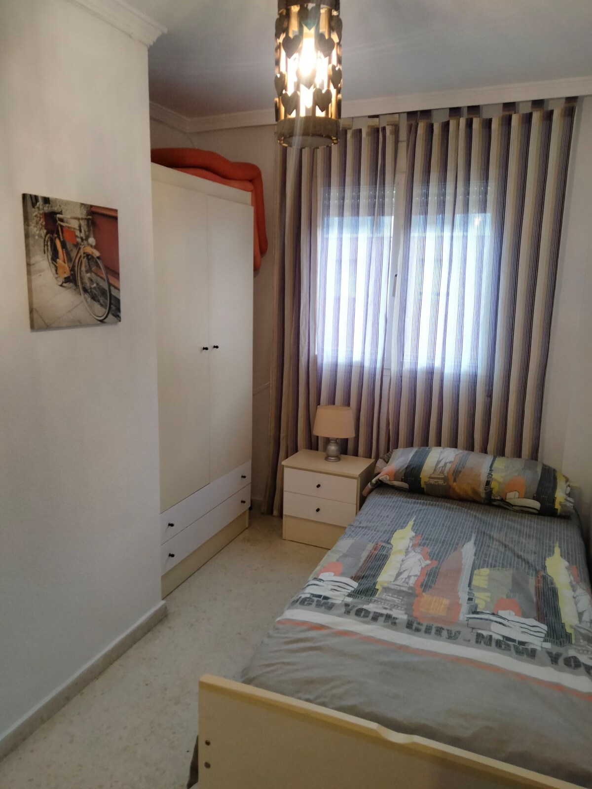 Apartamento en primera planta con patio amplio compartido con otro apartamento. Zona tranquila. Está compuesto por dos dormitorios, uno cama de matrimonio y otro cama de matrimonio y literas, salón (con aire acondicionado y ventilador). Baño y cocina (microondas, tostadora, cafetera y menaje necesario). Situado a 7min (550m) de la playa de regla. A 600m del centro. Rodeado de toda clase de servicios a menos de 200m (bares, supermercados, tiendas, farmacias, etc) WIFI GRATIS. AIRE SE PAGA APARTE