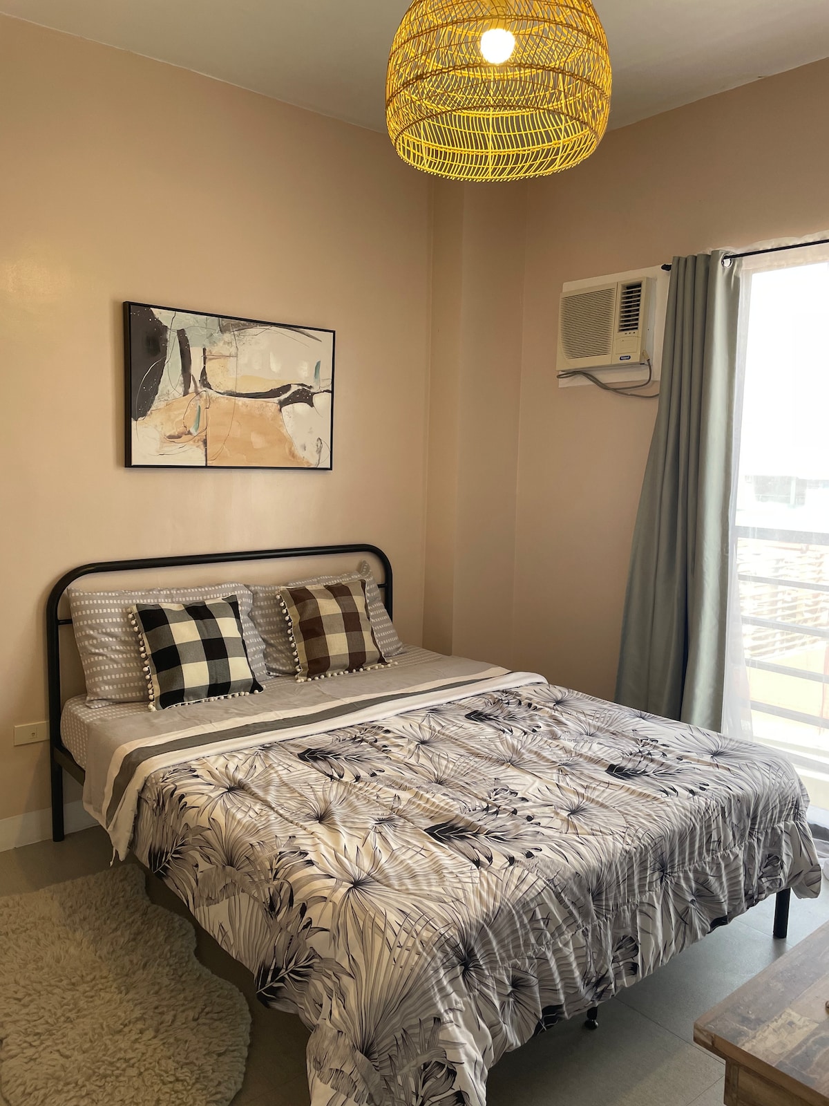“Casa de Nuevo” FALL in love with this gorgeous 1-bedroom apartment, aesthetically design to make you feel at home in the City of Golden Friendship. Especially design for a couple or a starting family, who enjoys a staycation and movie date nights with your very own 65-inch smart TV set!