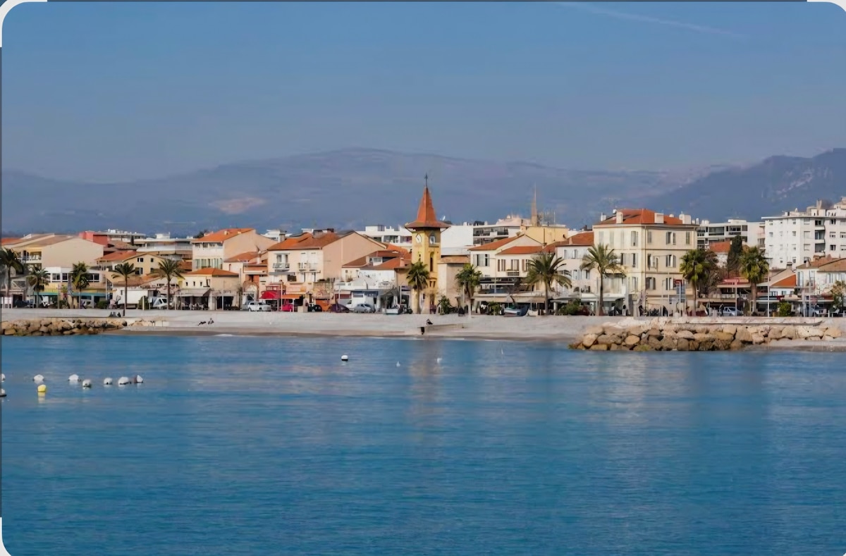 Diese Cocooning-Wohnung am Meer, ideal für Paare, bietet einen beruhigenden Meerblick. Die Wohnung ist 8 Minuten mit dem Auto vom Flughafen und 10 Minuten zu Fuß von der Pferderennbahn von Cagnes-sur Mer und lokalen Geschäften entfernt. Es verbindet Komfort und Ruhe. Das helle Wohnzimmer verfügt über ein hochwertiges Schlafsofa und einen Flachbildfernseher. Die Einbauküche ist mit einem Geschirrspüler und einer Nespresso-Kaffeemaschine ausgestattet. Keine Reinigungskosten.
