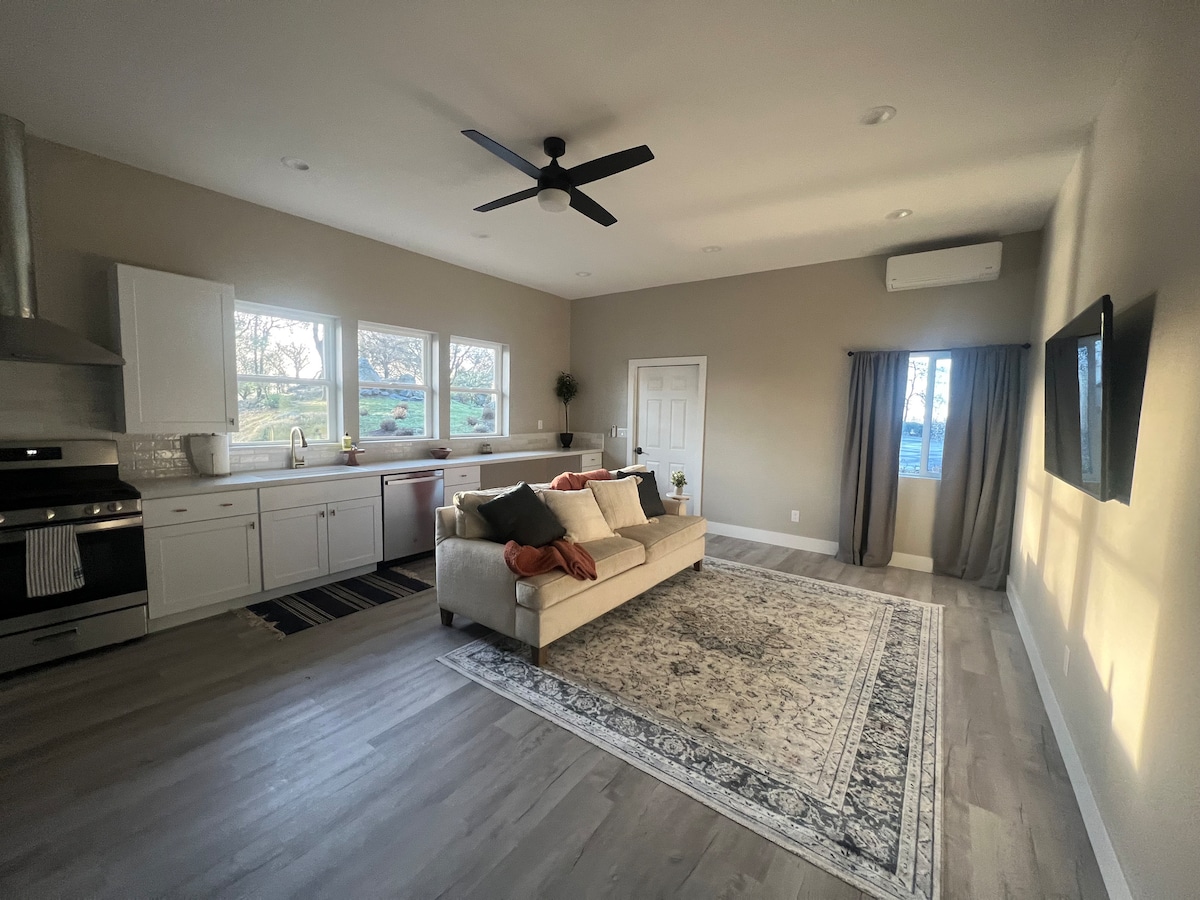 Super clean 1-bedroom guesthouse located in peaceful Phoenix Lake Estates—10 minutes from historic downtown Sonora. 80 miles to Yosemite, 21 miles to Pinecrest Lake, 29 miles to Dodge Ridge Ski Resort, and close to two casinos. Inside, you’ll find a spacious bedroom, bathroom, a fully equipped kitchen, a cozy living room with a pullout sofa bed, and a workspace. Many apologies, but we do now allow animals due to allergies.