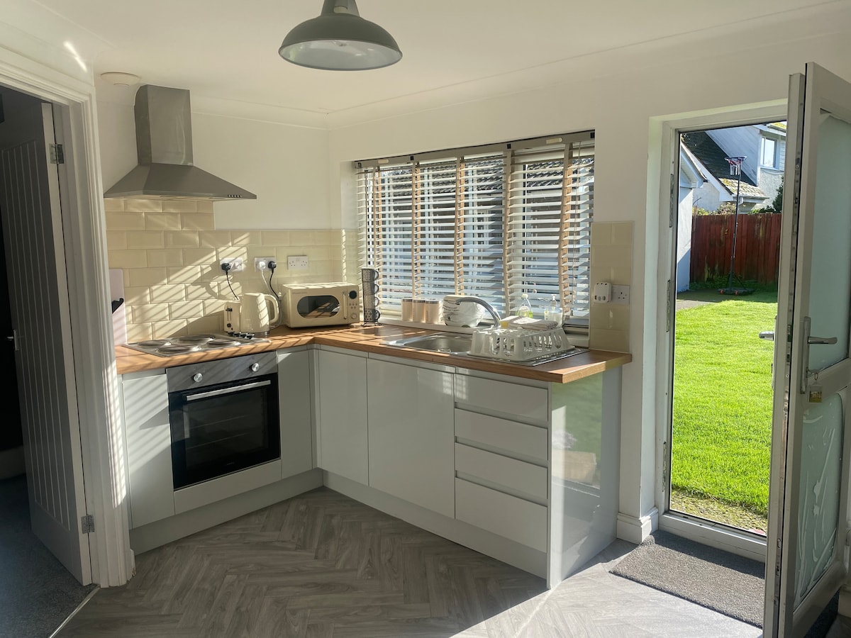 Set in the Countryside just outside the market town of Thornbury, Birch cottage is moments away from Bristol, Wales and 30 mins to the Cotswolds. Standing in its own private garden with stunning views across the river Severn into Wales, friendly sheep are your neighbours. The Cottage is brand new, fitted to a high standard with its own kitchen, en suite and private gated parking 10 mins from the M4/5. Close by are:The Wave, Clifton Bridge, Wye Valley, Bristol docks and Thornbury Castle.