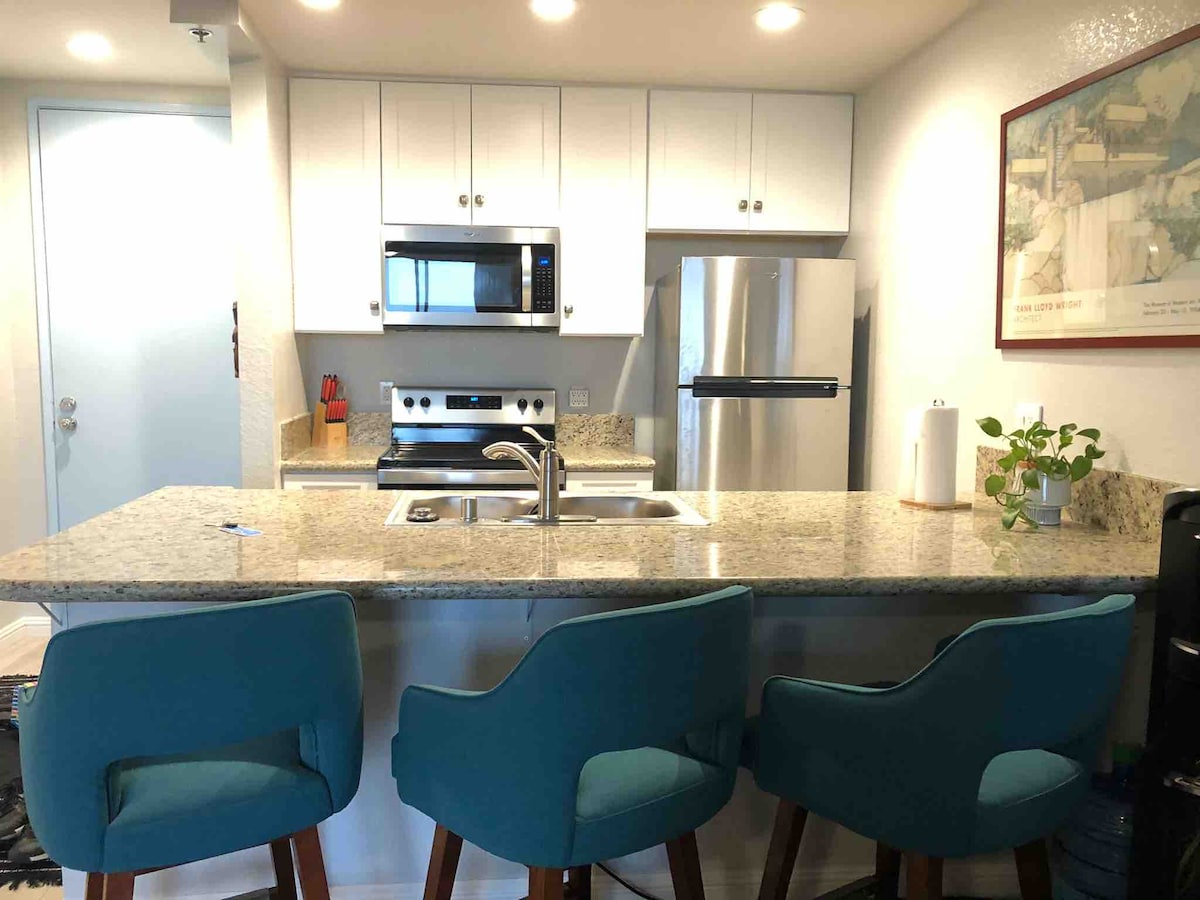 Nutze den Zug, um die Küste zu bereisen und in unserem Haus zu übernachten, wo wir keine Kosten gescheut haben, um dein zweites Zuhause mit einer schönen maßgefertigten Küche, einem Badezimmer und einem Wohnzimmer/Schlafzimmer nur wenige Schritte vom berühmten Pier, Hafen und schönen Stränden von Oceanside entfernt zu gestalten. Genieße den privaten Eingang zu deinem eigenen Mini-Hof, der zu deinem persönlichen Rückzugsort führt. Oceanside ist der perfekte Ort für alle, da Legoland (5 Min.), Seaworld (35 Min.), San Diego Zoo (30 Min.) und Disneyland (1 bis 1,5 Stunden) auf der I-5 sind.