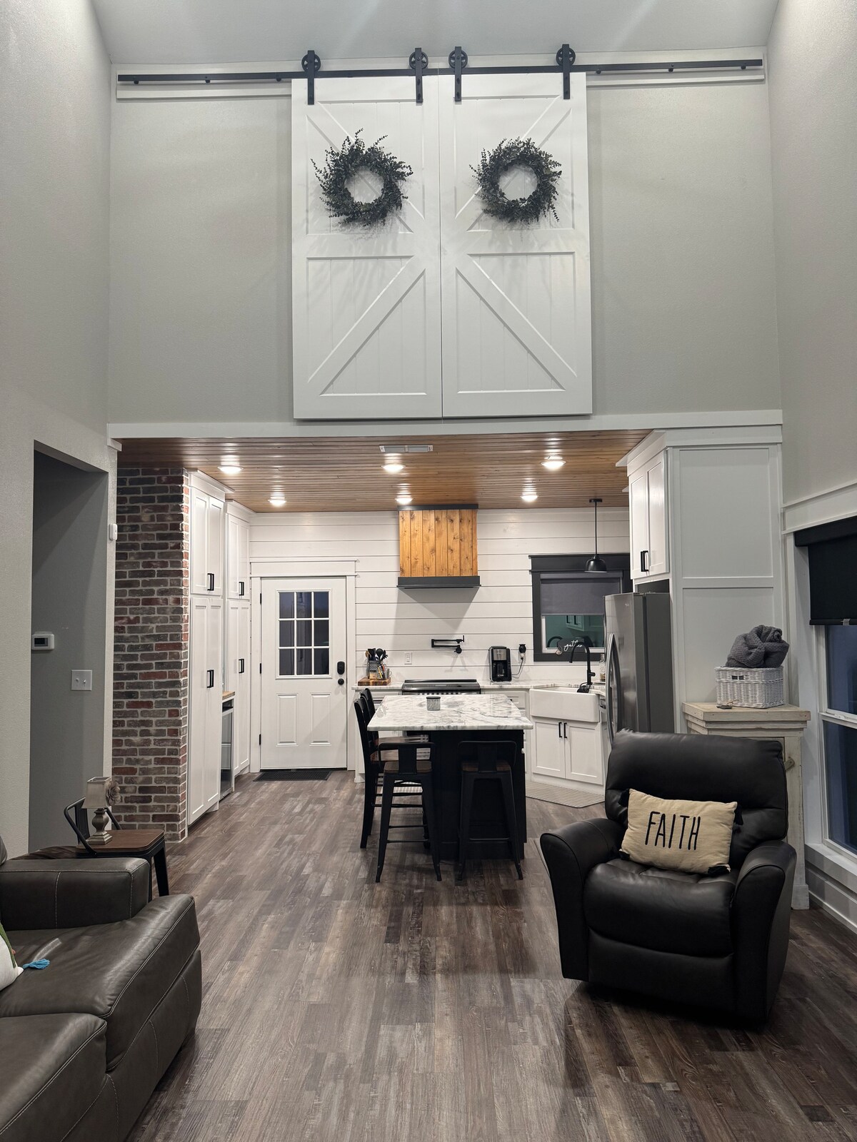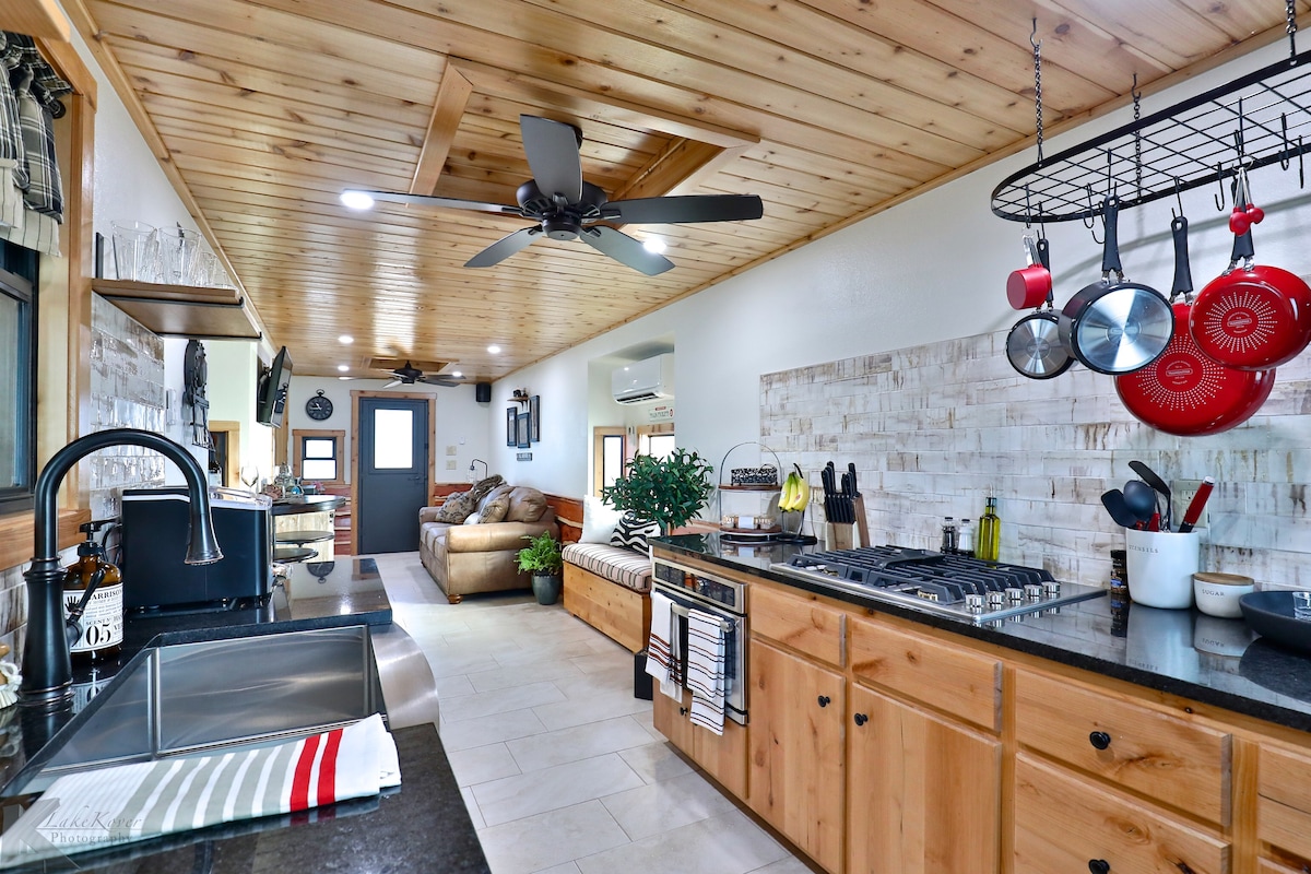 From relaxing on the patio under romantic lights to lounging on the cozy couch in the dining area, The Modern Lodge is the perfect tiny home getaway! It comes with amenities for staying in and cooking or it’s close enough to various dining options in town. You also receive a coupon for free ice cream at 32 Degrees ice cream shop on Main St. in Cross Plains. We look forward to hosting you as guests at The Modern Lodge!