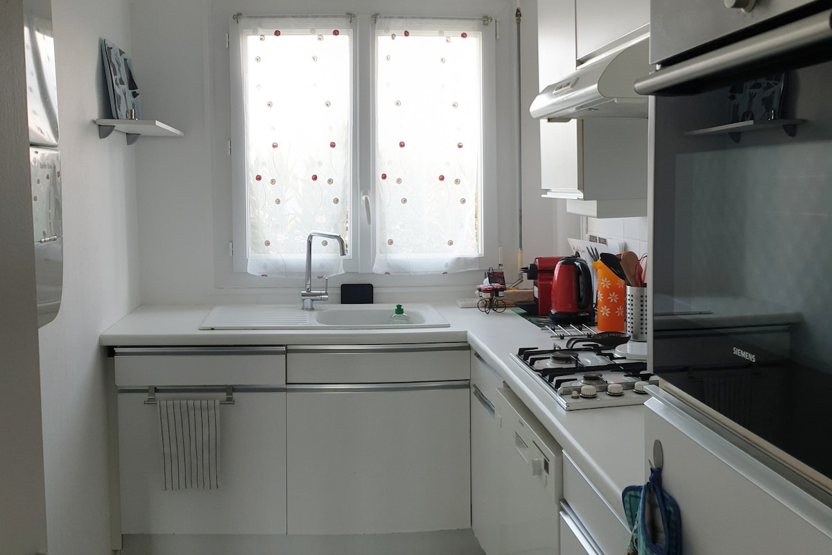 Profitez d'un logement élégant et central. Magnifique petite villa en retrait de la route principale et à seulement quelques minutes à pieds du centre-ville de Caen. - Terrasse Brasero - Chauffage réversible Clim - Mise à disposition de l'ensemble du linge de maison (draps, serviettes de bain, torchons...) - Cadeaux de bienvenue : savon, shampoing, capsules de café... - Ménage de départ