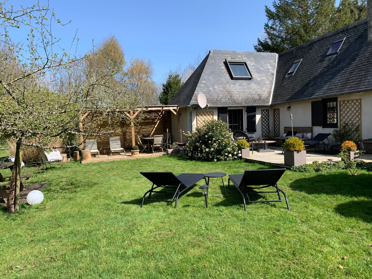 Komfortables „Gite“ im Backsteinhaus aus dem frühen 20. Jahrhundert, ideal für einen ruhigen und grünen Urlaub, nur wenige Minuten vom Meer entfernt. Wir sind Bio-Bauern, die Gemüse und Früchte nach den Prinzipien der Permakultur anbauen. Wir verkaufen unsere Produktion vor Ort („Les Jardins de la Thillaye“). Erkunde unsere Felder und bewaldete Landschaft, umgeben von Pferden und wilden Tieren auf einem Grundstück, das sich über mehr als 80 Hektar erstreckt, und genieße den fantastischen Blick auf das Touques-Tal und die umliegenden Pays d'Agge.