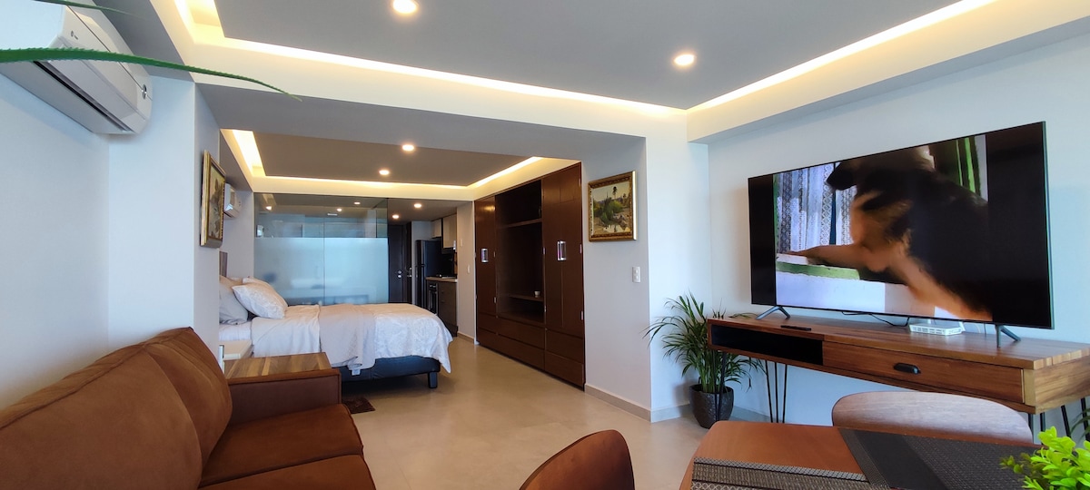 Inspirierendes Studio mit Dekoration im mexikanischen Stil mittendrin, nur einen halben Block von Malecon und dem Strand entfernt! Gehbarkeit und Lage können nicht übertroffen werden. Kommen Sie und erleben Sie diese erstaunliche mexikanische Erfahrung. Dieser Ort ist perfekt für ein Paar geeignet, aber es gibt Platz für 4 Personen. Sofa im Wohnzimmer ist aufblasbar und es wird zu einem Queensize-Bett. Kingsize-Bett mit Memory-Schaum und Kühlgel wird dich wie ein Baby schlafen lassen. Frag mich!