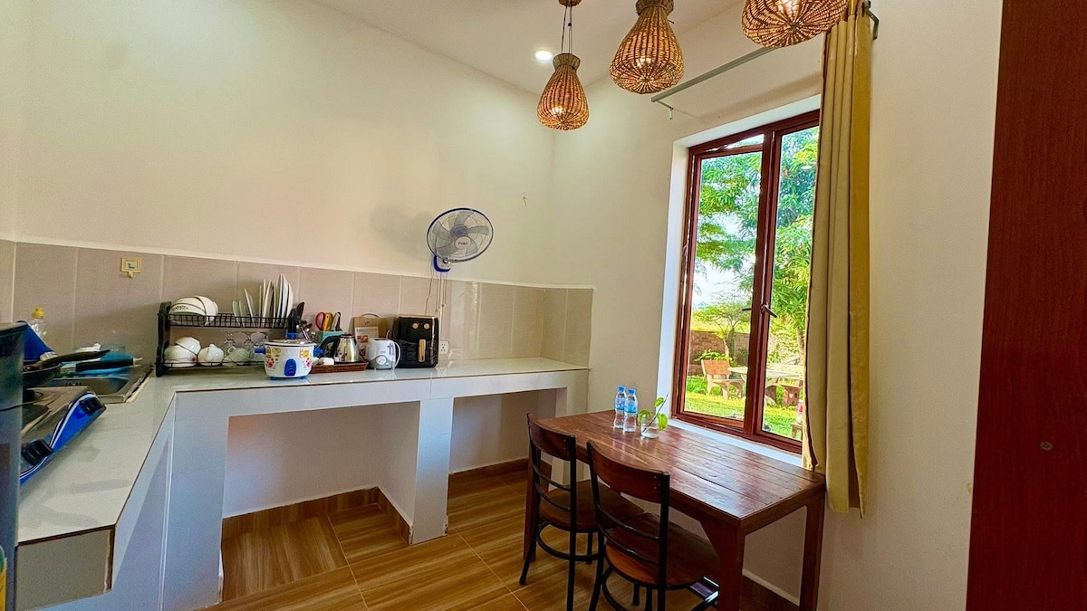 Lehne dich zurück und entspanne dich in diesem ruhigen, stilvollen Raum. Übernachte in unserer Villa mit 5 Betten und 4 Bädern in Kep, die mit Ruhe gestaltet wurde, und ein unvergesslicher Rückzugsort für Familien, Freunde oder große Gruppen. Perfekt für 12-20 Gäste. An der Hauptstraße von Kep gelegen, aber dennoch für Privatsphäre, Ruhe und Sicherheit konzipiert, genieße einen großen Pool mit einer Pergola für sternenbeleuchtete Abendessen, Grill und voll ausgestattete Küche und üppiges Grün. Umgeben von Bäumen ist es ein perfekter Rückzugsort für Familien und Gruppen. Buche jetzt für einen erholsamen und unvergesslichen Aufenthalt!