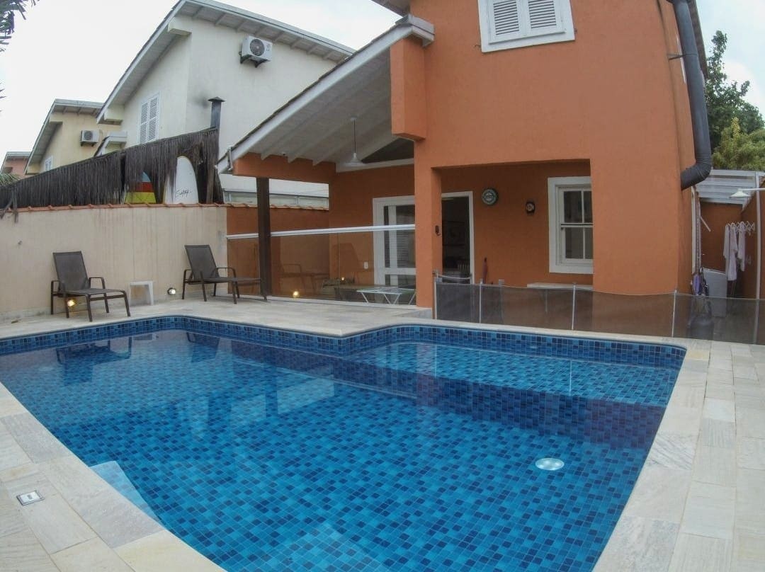 2 suítes e mezanino para 6 hospedes. Ar condicionado, Smart TV. Cozinha americana completa, varanda com rede e churrasqueira. Amplo gramado e estacionamento para 4 carros.Piscina privativa de 4X3 m., com espreguiçadeiras, mesas, cadeiras e guarda sol para refeições ao ar livre . Piscina protegida para segurança de crianças e pets.Taxa de R$250,00 para 2 pets. Podem ocorrer eventualmente falhas na internet, queda pontual de energia elétrica e barulhos de obras e outros nas vizinhancas