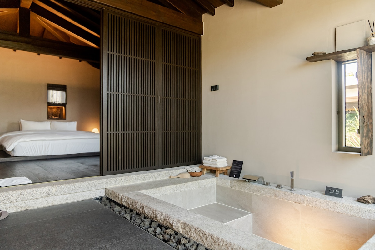 ▶Jeju SUM Opening Discount Event ◀ 1. Der Preis wird um bis zu 55% ~ 20% reduziert. 2. Kosten für das Aufladen eines Elektroautos sind ab 2 Übernachtungen kostenlos!!! Ein friedlicher Aufenthalt "Jeju Sum", der sich vor dem Meer wie ein verstecktes Juwel anfühlt Entspannen Sie sich in einer ruhigen Unterkunft mit Stil. Es ist das vierte Werk von "Designer Sunset". Egal wo Sie im Innenbereich stehen, Sie sind ohne jegliche Behinderung mit dem Meer verbunden. Die 35-Grad-Temperatur von Jakuzi, die Sie vor dem Meer genießen, löst die Müdigkeit in der Zwischenzeit. Spüren Sie an einem verschneiten Tag die Gemütlichkeit, die Sie in einem Freibad genießen können. Und im Frühling, Sommer und Herbst können Sie Ihre Füße in die kühlen Fußbäder (kalte Teiche) tauchen und die Erinnerungen an ein Abendessen oder eine Kaffeepause zur Heilung festhalten. Es ist optimal für zwei Paare oder eine vierköpfige Familie. Wenn Sie in "Jeju-Atem" sind, wird die Zeit nicht ausreichen, um es nur drinnen zu genießen. Wir empfehlen Ihnen, mindestens 2 Nächte hintereinander zu bleiben.