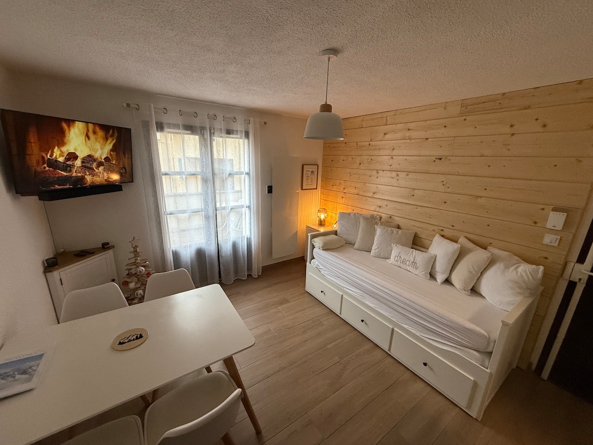 Wohnung in der neuen Residenz "Pic du Midi", bestehend aus einem Wohnzimmer mit Schlafsofa, einem Schlafzimmer mit Doppelbett 160 cm, WC, Bad, Südterrasse mit Bergblick. Ausgestattete Küche: Kühlschrank, Herd, Geschirrspüler, Mikrowelle, Wasserkocher, Nespresso-Kaffeemaschine. TV, Staubsauger, Skiraum und überdachter Parkplatz. Die Residenz verfügt über einen beheizten Pool, einen Fitnessraum mit freiem Zugang und eine Waschmaschine. Skipisten in 3 Min. zu Fuß erreichbar.
