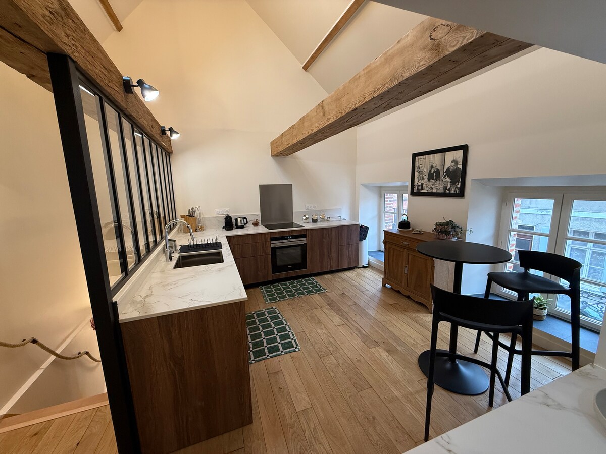 Adoptez la Cocooning attitude En plein coeur de la baie de somme - très belle appartement authentique, chaleureux et design. Draps et serviettes fournis. Supplément 50€ pour 1 animal de compagnie. 🐾🐶 n’oubliez pas de le déclarer. 😜 Ce gite entièrement restauré de 120M2 offre de très beaux volumes, ainsi qu’une vue panoramique sur la baie avec les allées et venues des phoques. Situé au pied des commerces et de la place du marché, vous n’avez plus qu’a poser votre voiture et vous promener.