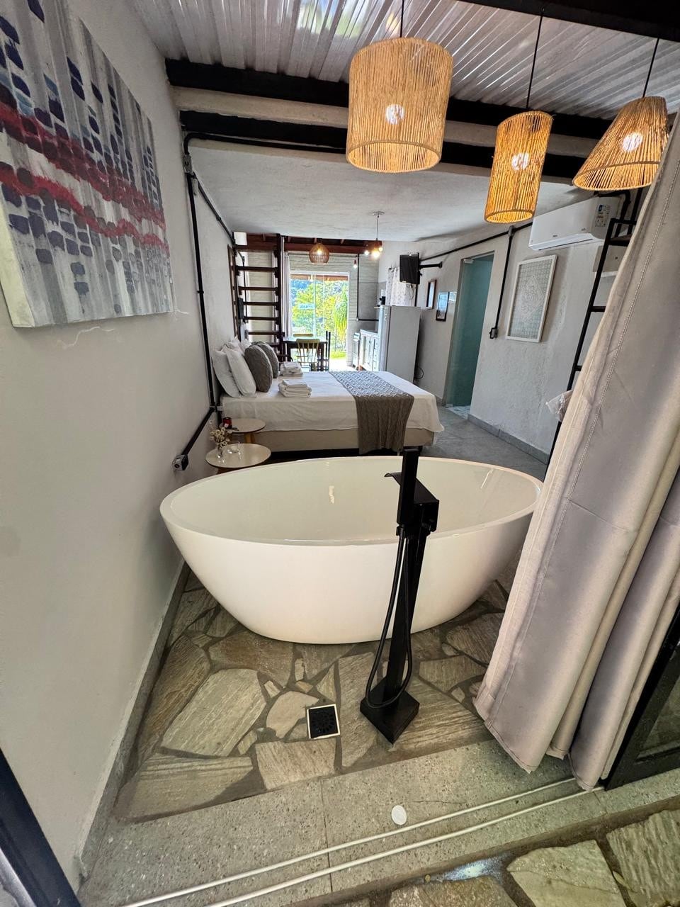 Micro casa com privacidade , ar condicionado, banheira de imersão , pé direito duplo com mezanino, mix de decoração industrial e rústica . Sustentável, 100% energia elétrica produzida aqui . O chalé possui self check in , wi fi , tv Chromecast,cama queen size com lençois 200 fios , ducha aquecida a gás, ducha higiênica, cortinas black-out , geladeira , fogão , microondas, sanduicheira , cafeteira nespresso, churrasqueira, piscina compartilhada 3 chalés e uma vista maravilhosa das montanhas .