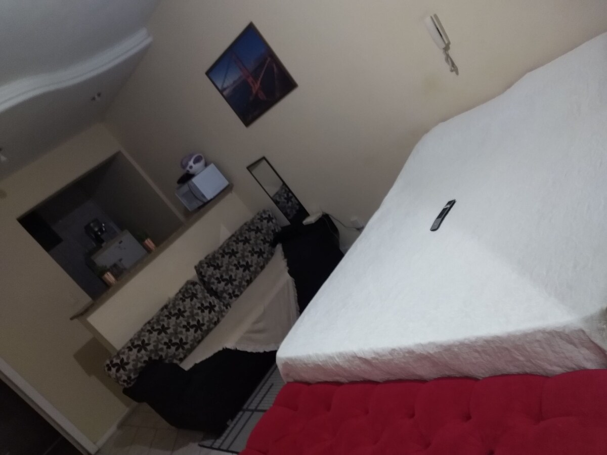 30 m² große Wohnung im Zentrum von Campos dos Goitacazes, die darauf vorbereitet ist, Ihnen einen sehr komfortablen Aufenthalt zu bieten. Es verfügt über kostenlose Parkplätze für ein Fahrzeug, Internet, Smart-TV, Klimaanlage, Minibar, Elektroherd mit zwei Kochplatten, Geschirr und Besteck für 2 Personen, 2 Töpfe, Mixer, Sandwichmaker und Kaffeemaschine, Queensize-Doppelbett. Sie liegt in der Nähe von Krankenhäusern, Busbahnhof, Supermarkt und Apotheken.