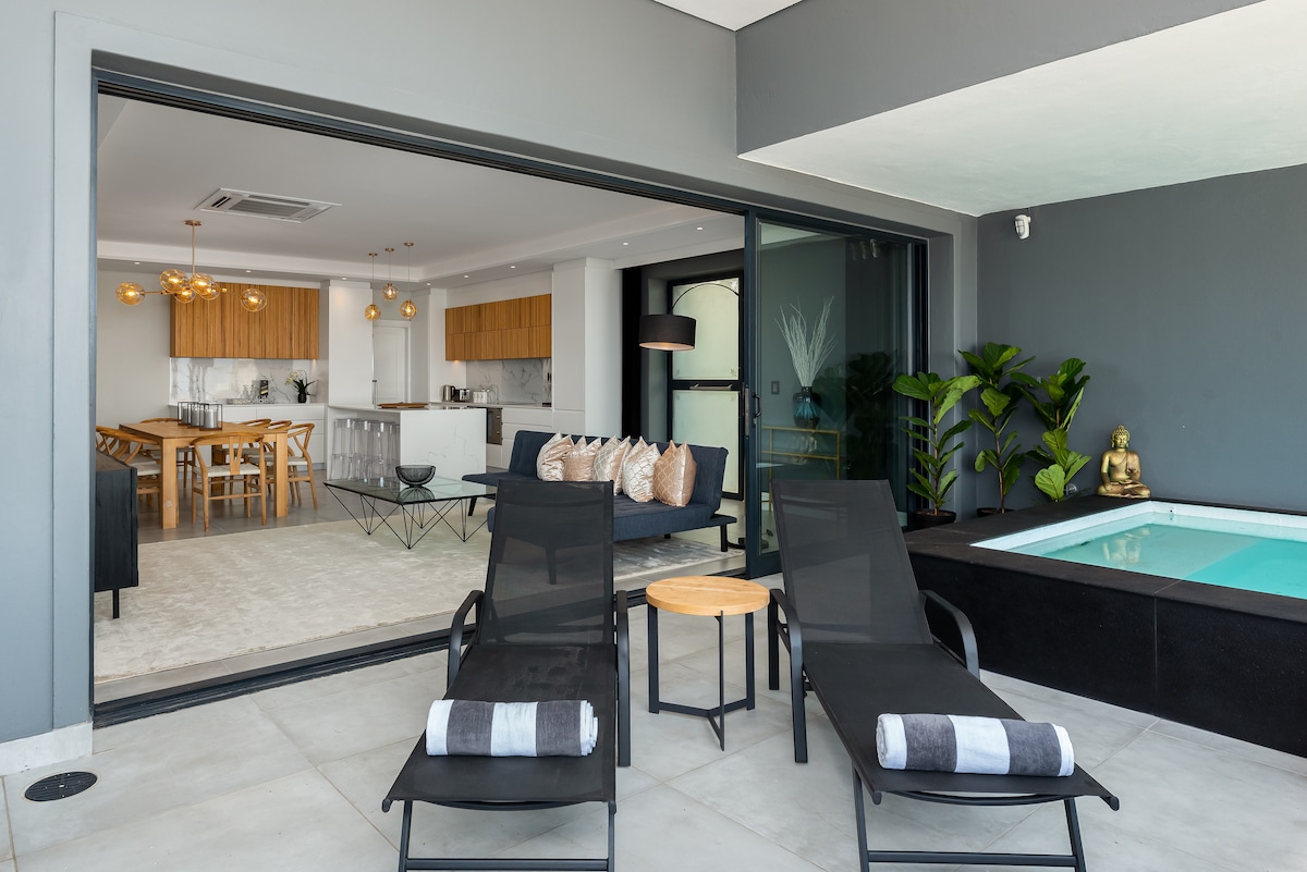 Geräumige Wohnung in Camps Bay, wo der atemberaubende Meerblick dem herausragenden Stil im Inneren entspricht! Genieße das, was wir zu bieten haben, und entspanne dich jeden Tag zur goldenen Stunde auf der Terrasse. Kapstadts exquisiteste Vorstadt mit den besten Stränden, Restaurants und Bars, auf der Rückseite des Tafelbergs und des Stadtzentrums – alle Aktivitäten innerhalb von 5 Minuten Fahrt, zu Fuß, mit dem Bus und Uber-Routen. Der ideale Ort, um Arbeit, Leben und Spiel auszugleichen!