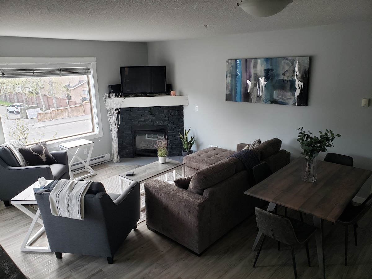 Soak away your stresses while gazing at the breathtaking scenery of the Rocky Mountains in a peaceful Mountain neighbourhood. Watch the sun set while making memories around the campfire. Let the surroundings inspire you to create incredible meals in our fully stocked gourmet kitchen. Biking and Hiking trails are outside your door; Well behaved Dogs (No CATS) are welcome but we MUST be informed as there is a Pet Fee and guidelines. Please Note that we have a Neighbour on one side.