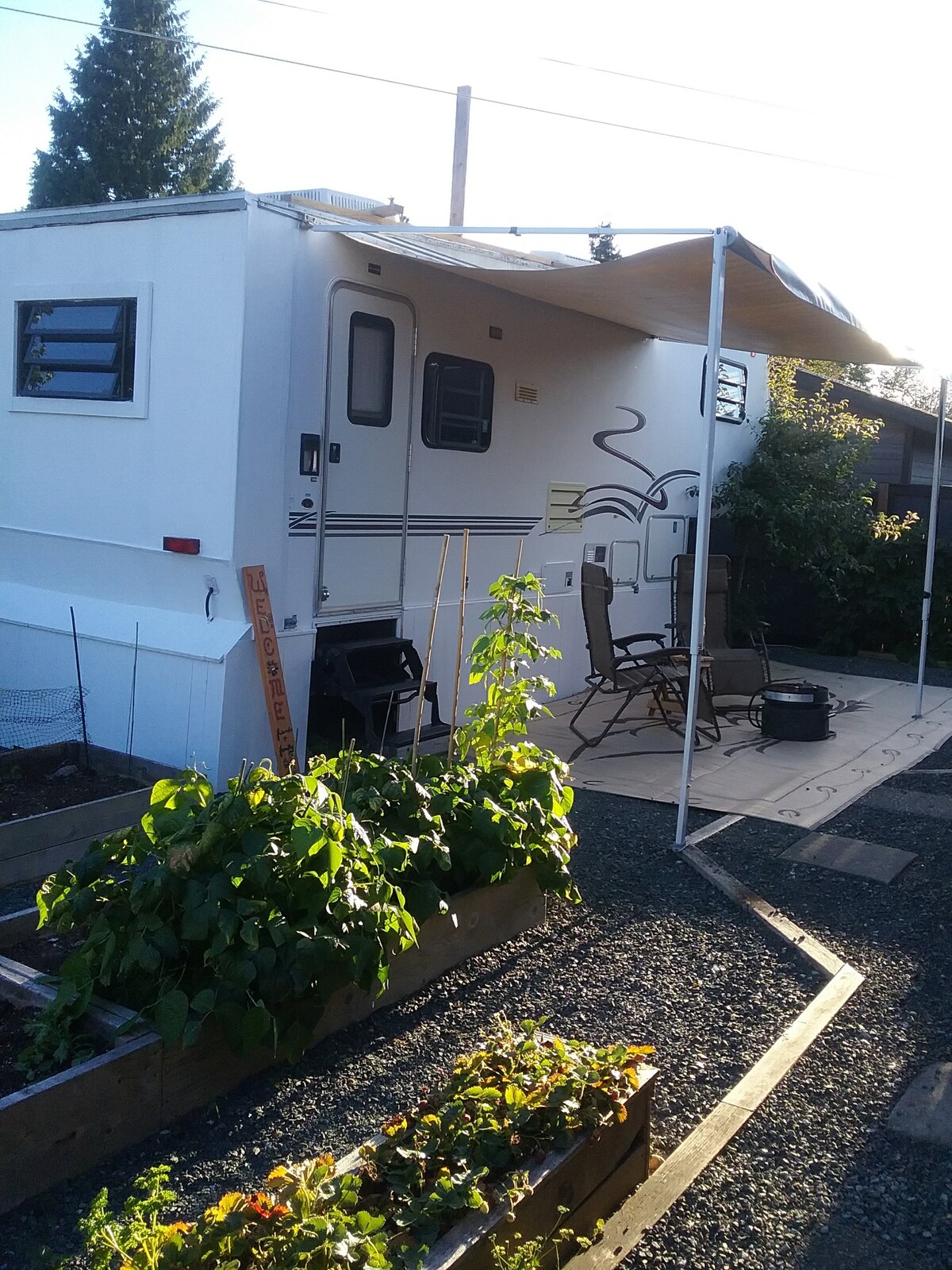 Das Wohnmobil befindet sich in unserem Garten. Nur wenige Minuten vom Highway Nr. 4 auf der Route zu den Westküstenorten Tofino und Ucluelet entfernt, nur 1:40 Minuten entfernt. Es liegt in der Nähe von Sprout Lake, lokalen Wanderwegen, großartigem Angeln und Walbeobachtung. Es ist ein privates 25-Fuß-Wohnmobil mit einem Queensize-Bett und einem Einzelschlafsofa. WLAN, Badezimmer mit Dusche, Küche ist mit Besteck, Tassen, Geschirr, Töpfen und Pfannen ausgestattet. Wir bemühen uns sehr, einen entspannenden, angenehmen Raum zu bieten, in dem sich Gäste willkommen und wie zu Hause fühlen können.