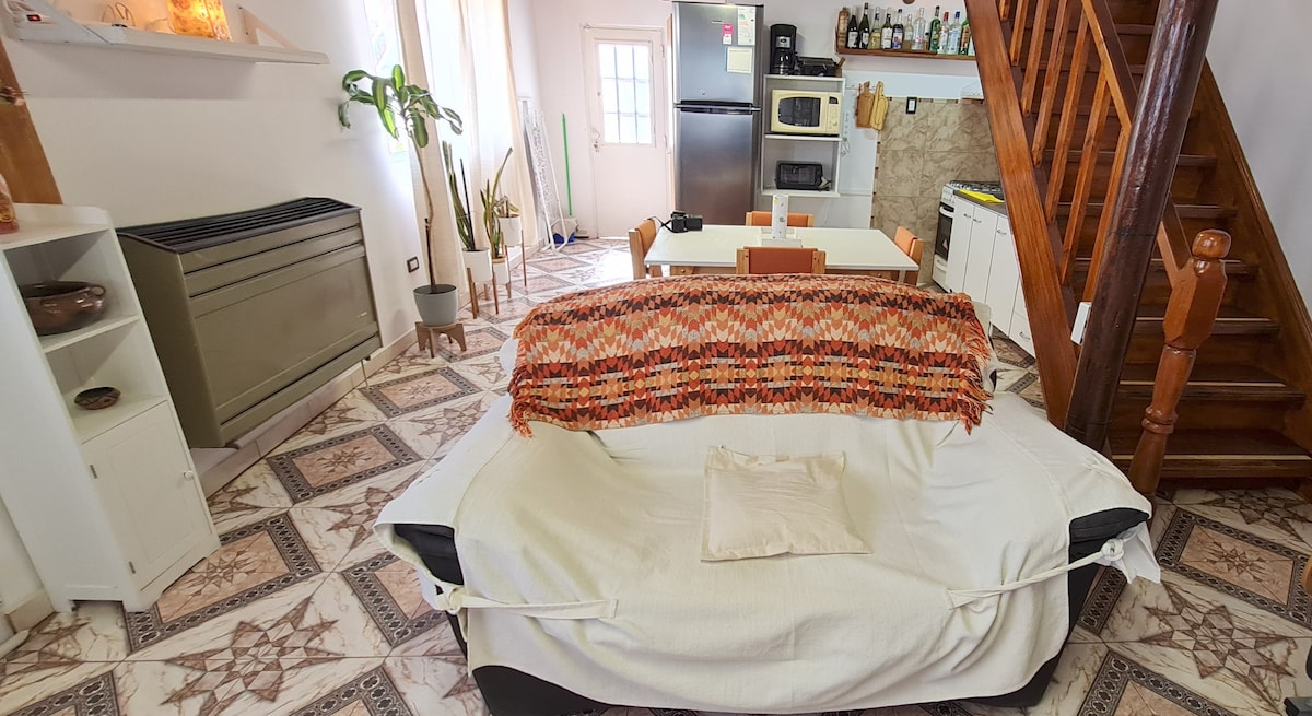 Disfruta de una experiencia con estilo en este alojamiento céntrico y tranquilo con capacidad de hasta 4 personas que se encuentra en planta alta con acceso por escalera. Cuenta con estacionamiento, patio con asador, balcón, wifi y demás servicios. El dpto. se encuentra rodeado de todo tipo de comercios y despensas. Ideal para descansar y disponer de todas las necesidades.