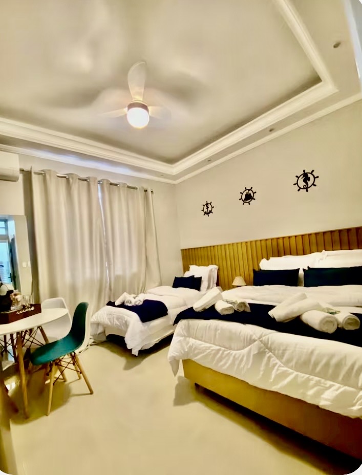 Wohnung direkt am Meer mit herrlicher Aussicht im Herzen von Gonzaga. 50 Meter vom Einkaufszentrum entfernt. Bars, Restaurants, Bäckerei und Apotheken. Alles in Ihrer Nähe. 3 Schlafzimmer, davon 1 Suite. 1-Suite mit Queensize-Bett und 1 Schlafsofa. 2-Zimmer mit Doppelbett. 3-Zimmer mit Etagenbett + Einzelbett und zusätzlicher Matratze. Bettwäsche und Handtücher werden gestellt. Klimaanlage in den Schlafzimmern und im Wohnzimmer. Smart-TV mit Netflix im Wohnzimmer und in der Suite. Internet. Verfügt über 1 Garagenstellplatz. Ich stelle Bettwäsche und Handtücher zur Verfügung.