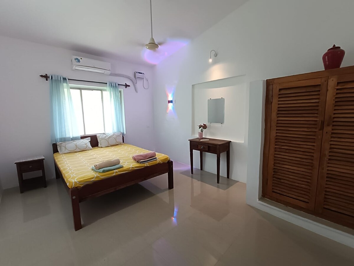 Few steps from Calangute beach and Candolim beach. centrally located near by beach market, cafes and restaurants, beach shacks. close to baga night life titos lane and famous clubs. Perfect for couples, friends, and workation guests looking for comfort + fun. entire 2bhk with spacious premises centrally yet private space independent house with safety. acs in all rooms and hot water available 24*7. private balcony and terrace. fully equipped kitchen. mart and shops near by. bike rentals near by.