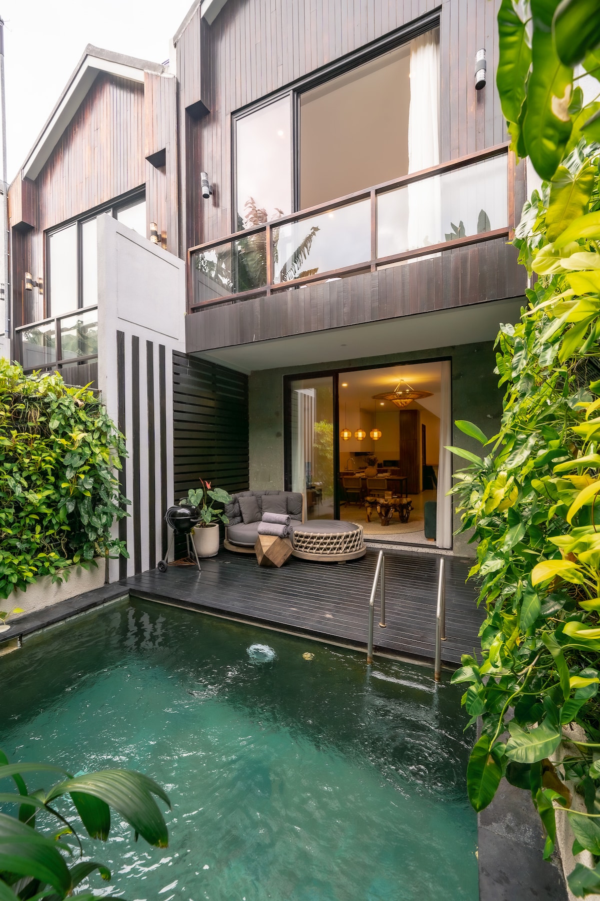 Moderne Design-Villa in Canggu • 2 schicke, klimatisierte Schlafzimmer mit eigenem Bad • Badezimmer mit ebenerdigen Duschen, Bio-Pflegeprodukten und Haartrocknern • Privater Pool, umgeben von einem üppigen tropischen Garten • Elegantes, versenktes Wohnzimmer mit Glaswänden und maßgeschneiderten Innenräumen • Voll ausgestattete moderne Küche und Essbereich • WLAN 300 Mbit/s • Smart-TV mit Netflix, PS5 auf Anfrage • Tägliche Reinigung, frische Bettwäsche & Handtücher • Babybett & Hochstuhl auf Anfrage • Concierge-Service für Transport, Touren und mehr