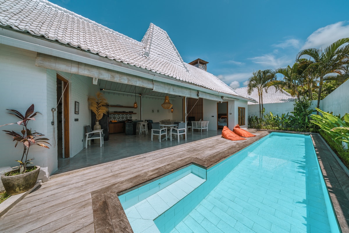 ★ Special free airport pickup —luxury villa steps from Canggu’s famous Echo Beach ☞ Designer villa ☞ Walk to beach, cafes, dining, spas & beautiful boutiques ☞ Surf + private access to the beach ☞ Pool & indoor/outdoor lounge ☞ Full kitchen ☞ AC in all bedrooms ☞ Private maid ☞ Fast Wi-Fi ☞ Free Airport Pickup with 3-night minimum stay 1 min → Echo Beach (swim, surf, cafes) + World Class Waves 1 min → Shelter Restaurant & La Brisa Beach Club 1 min → Baked Canggu’s best cafe