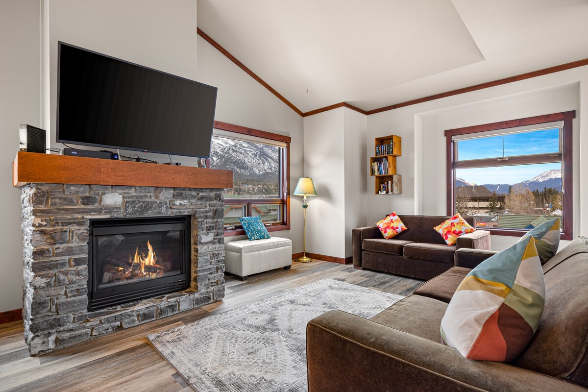 Welcome to your peaceful and stylish Canmore getaway! This luxurious condo is just a 10-minute walk from the town centre, putting shops, restaurants, and trails right at your doorstep. Relax by the cozy stone fireplace, sink into a plush king-sized bed, or host extra guests on the high-quality sofa bed. Enjoy bright, airy living space, fully equipped kitchen, in-suite laundry, complimentary parking, and 1 GB high-speed Wi-Fi. Ideal for adventure or relaxation in the Rockies.