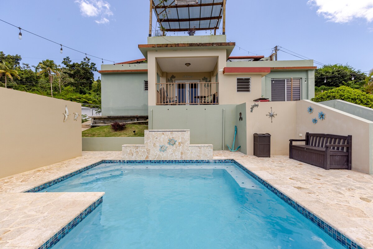 Entspannendes Landhaus mit großem Himmel und gemütlichen Betten. Auf der Suche nach einem intimen Refugium, in dem du nichts absolut anderes tun kannst, als dich zu entspannen, wieder ins Gleichgewicht zu bringen und dich wieder aufzufüllen. Nur 30 Minuten vom Flughafen SJU entfernt. Genieße unseren Whirlpool mit Hydrotherapie-Massage, während du unseren atemberaubenden Berg-, Stadt- und Meerblick betrachtest. Dieses Haus wurde entworfen, um ein zweites Zuhause zu sein. Perfekt für Veranstaltungen und kleine Hochzeiten, wird eine zusätzliche Gebühr erhoben. Hinweis - Klimaanlage hinzugefügt März 2025 / Full Power Generator