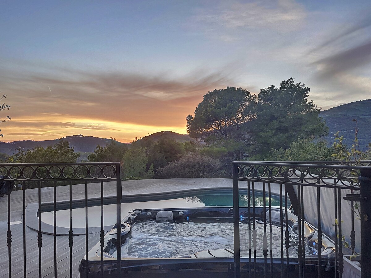 Petit STUDIO très bien équipée avec entrée et parking privé dans une grande Propriété avec piscine et jacuzzi chauffés du 10 avril au 30 octobre . La piscine extérieur et jacuzzi ainsi que le jardin sont partagés mais assez grand pour profiter chacun son espace de tranquillité . Je vis dans la bastide principale . Un Havre de Paix entouré d oliviers centenaires . A 35 minutes de l aéroport de Nice et divers villages provençaux et 14km de Cannes . Tele grand écran /abonnement Netflix
