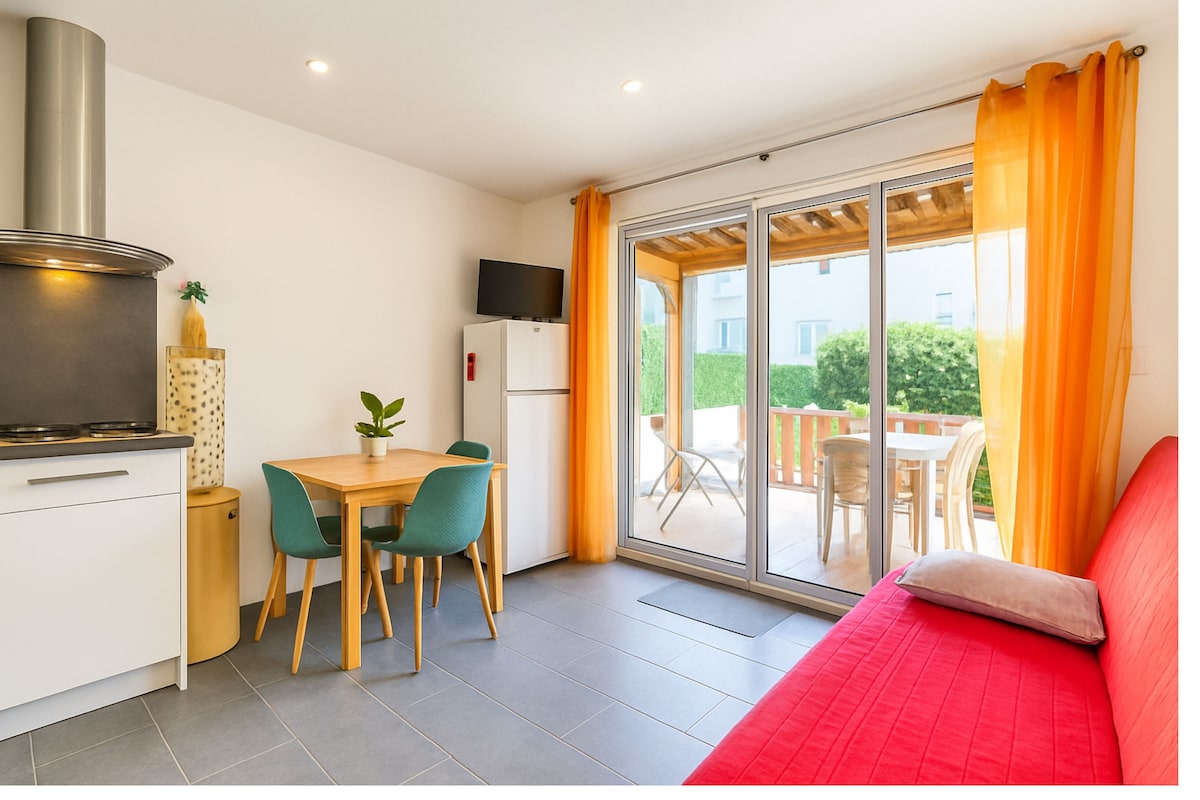 T1 von Gîte de France klassifiziert, sehr funktional und sehr modern mit WLAN, Klimaanlage + privater Parkplatz in unmittelbarer Nähe der Unterkunft + große Terrasse nach Süden, ruhige, sehr beliebte und sichere Wohnanlage, perfekt für Tennisfans mit direktem Zugang zur French Touch Academy. Sie haben einen Tennisplatz, der der Wohnung gewidmet ist. Infinity-Pool + Trainingswand, Boulodrom, Tischtennis und City Park für Kinder & Jugendliche, nicht weit zu Fuß vom Hafen und den Stränden entfernt