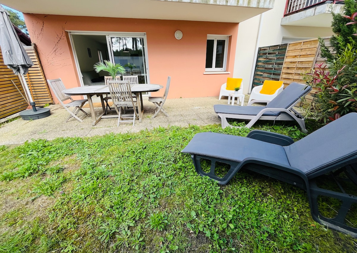 Wohnung im Erdgeschoss, im Erdgeschoss unserer Villa, sehr ruhige Gegend hinter der Düne von Santocha, 2 Minuten zu Fuß zu den Stränden von Capbreton und Surfspots. Eingang mit Loggia, ausgestattete Küche offen zum Wohnzimmer TV Doppelbett 160 cm, Schlafzimmer Kabine 2 Einzelbetten, SDB, separates WC. Garten mit Gartenmöbeln, Esstisch, Grill. KOSTENLOSES WLAN Das Paket Bettwäsche und die obligatorische Endreinigung ist vor Ort bei Ihrer Ankunft zu bezahlen: 20€/Aufenthalt