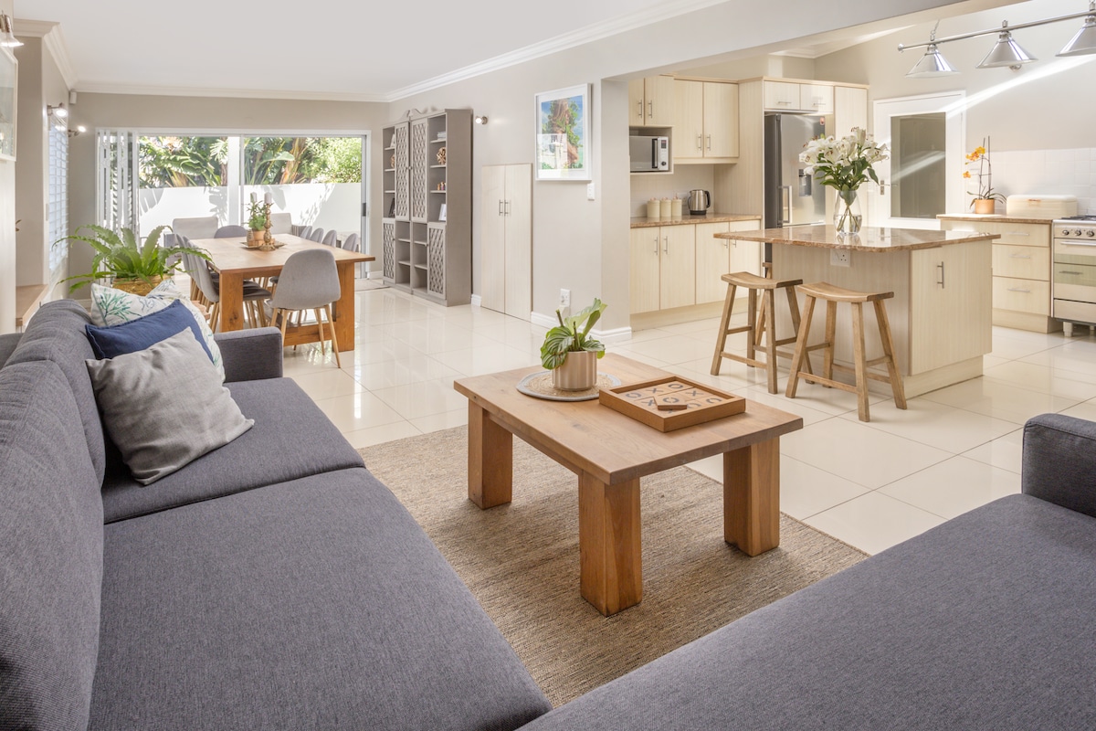 Komfortables und geräumiges, modernes Ferienhaus mit zwei Schlafzimmern im Stadtzentrum, mit zwei schönen privaten Innenhöfen und Braai-Bereich. Restaurants, Geschäfte und der Klippenpfad am Meer sind zu Fuß erreichbar. Geschmackvoll eingerichtet und geräumig mit voll ausgestatteter Küche, zwei Badezimmern, offenem Ess- und Loungebereich. LASTABWURF: - Das Ferienhaus verfügt jetzt über eine USV (UNTERBRECHUNGSFREIE STROMVERSORGUNG) - Das Ferienhaus verfügt über einen Gasaustritt, einen Gasherd und einen Wasserkocher sowie Kerzen.