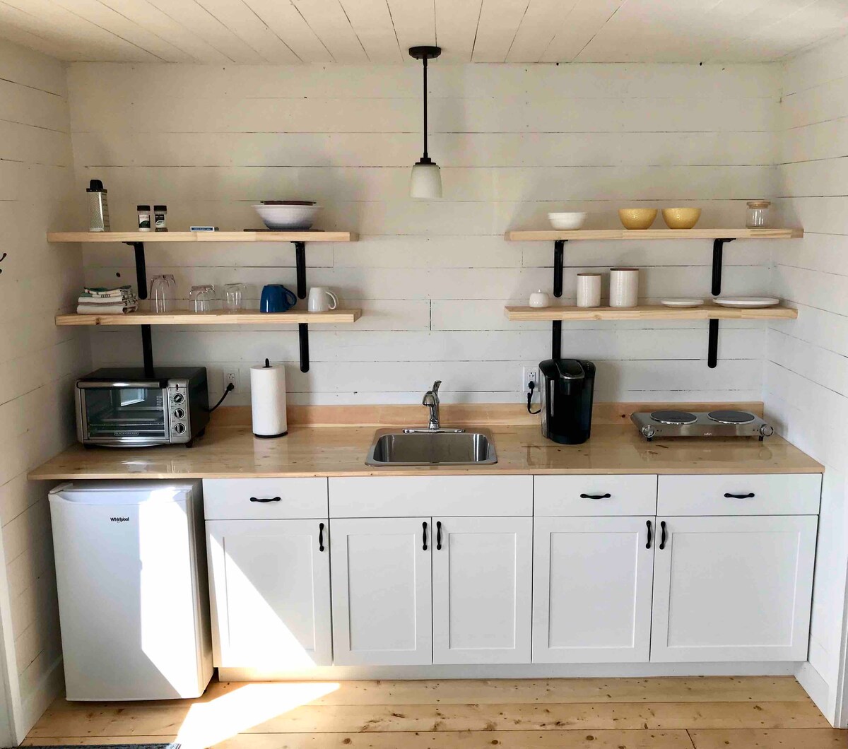 Eine helle, gemütliche Hütte mit Meerblick, geeignet für zwei Personen, verbindet ein rustikales/modernes Design mit einem komfortablen Queensize-Bett und Annehmlichkeiten. Diese Hütte befindet sich im Zentrum der historischen Fischergemeinde Portugal Cove South und bietet einen Blick auf den Kai und das Kommen und Gehen der lokalen Fischerboote. Genieße die Sehenswürdigkeiten, Klänge und Düfte des Atlantiks direkt vor deiner Haustür.