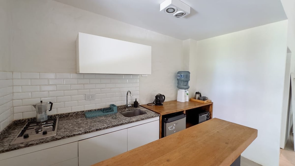 Relax total en un loft independiente para 2 personas. A 20 min de Corrientes y 5 min del aeropuerto. • Cocina completa y utensilios • Parrilla y fogón en parque con vegetación • Piscina compartida • WIFI + A/C + Estacionamiento Acceso directo a la Laguna Soto para caminatas y naturaleza. Perfecto para parejas o viajeros tranquilos. No se aceptan mascotas ni menores.