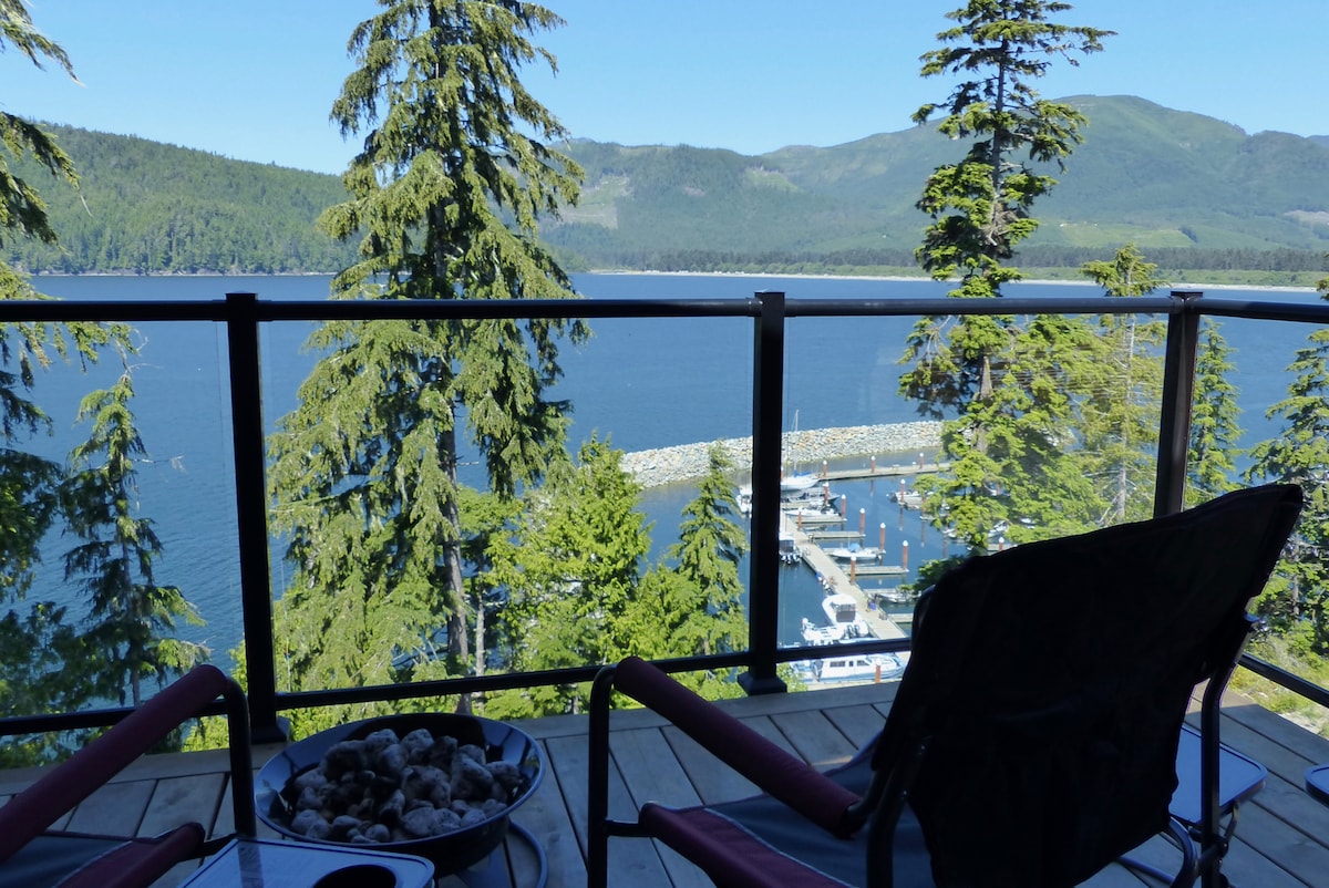 Rückzugsort am Meer an der Westküste, 40 Meter über der Brandung, angrenzend an China Beach. Genießen Sie Strandfeuer, Waldspaziergänge, Wandern, Pilze sammeln und Surfen. Ein kurzer privater Pfad führt Sie hinunter zum Strand. Die 560 Quadratfuß große Hütte befindet sich auf dem Grundstück und bietet einen spektakulären Panoramablick auf die Juan de Fuca Straight. Mach es dir in dieser gemütlichen Hütte mit Kingsize-Bett am Holzfeuer gemütlich oder nimm ein Bad in der Außenwanne und genieße die atemberaubende Aussicht!