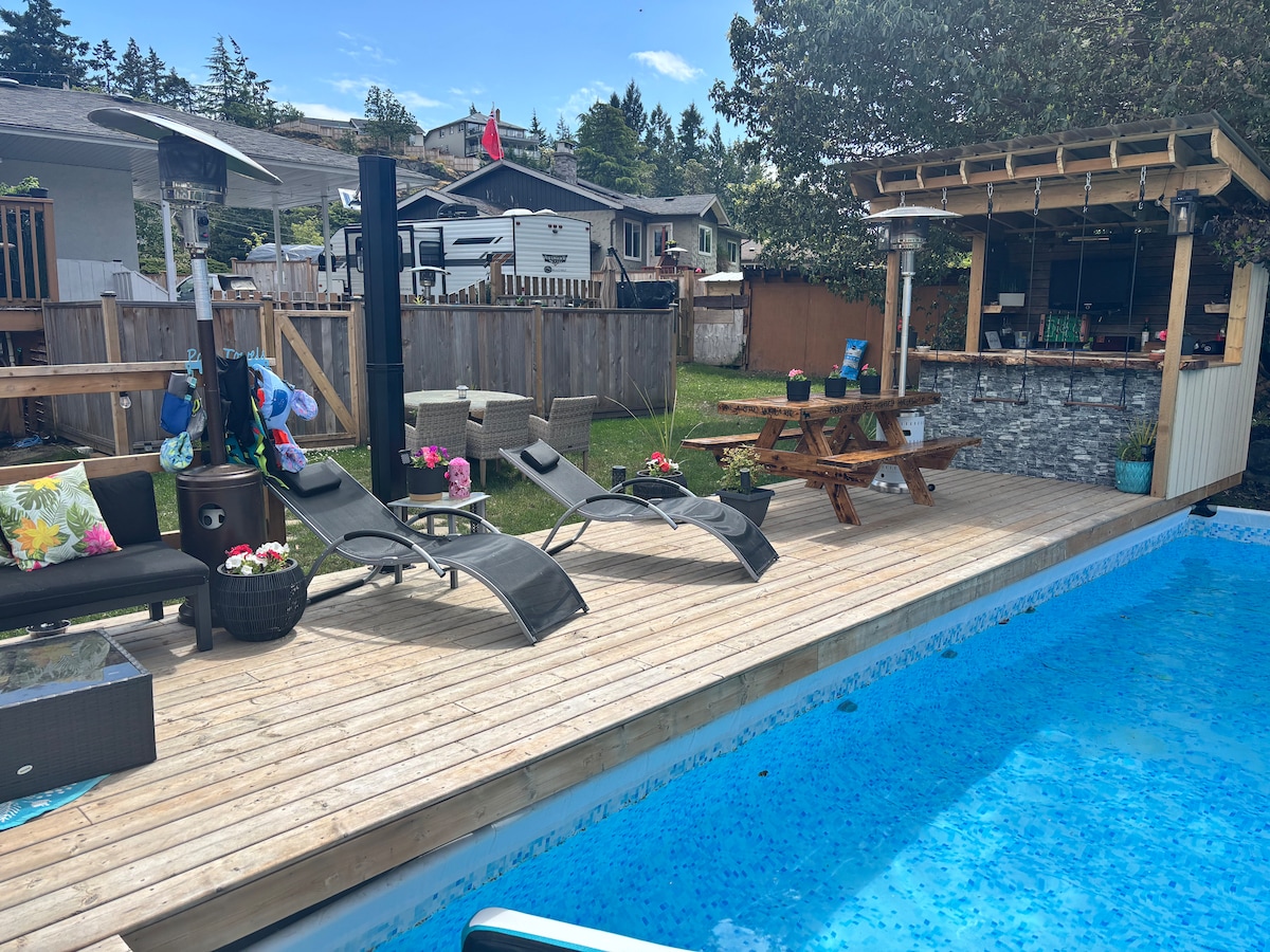 Beautiful timber frame rancher pool and hot tub