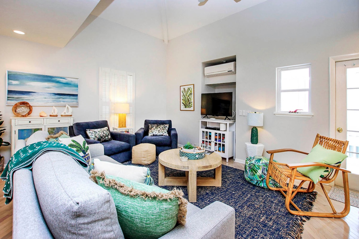 Right on the beach w/no stairs to climb! Enjoy ground floor living at its best in this relaxing coastal retreat, just steps to the beach. This large 1BR condo sleeps 5 and was fully renovated to include a custom kitchen & bathroom w/large walk-in shower. Top of the line coastal furnishings in every room. The spacious master bedroom offers a Stearns and Foster king bed and a full-size desk if you need a quiet space to work. WiFi has been fully upgraded to make streaming and video a breeze!