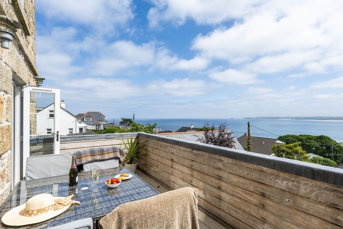 3a Sea View Place is a cosy, well equipped apartment nestled into the rocks just above Bamaluz Beach. It boasts the most spectacular of sea views which can be enjoyed from the comfort of your own balcony making your holiday in St Ives truly unforgettable. This idyllic apartment is ideally situated to explore all that St Ives has to offer. Porthmeor and Porthgwidden beaches, and the picturesque Harbour, with its array of bars, restaurants, shops and galleries are all just a stroll away.