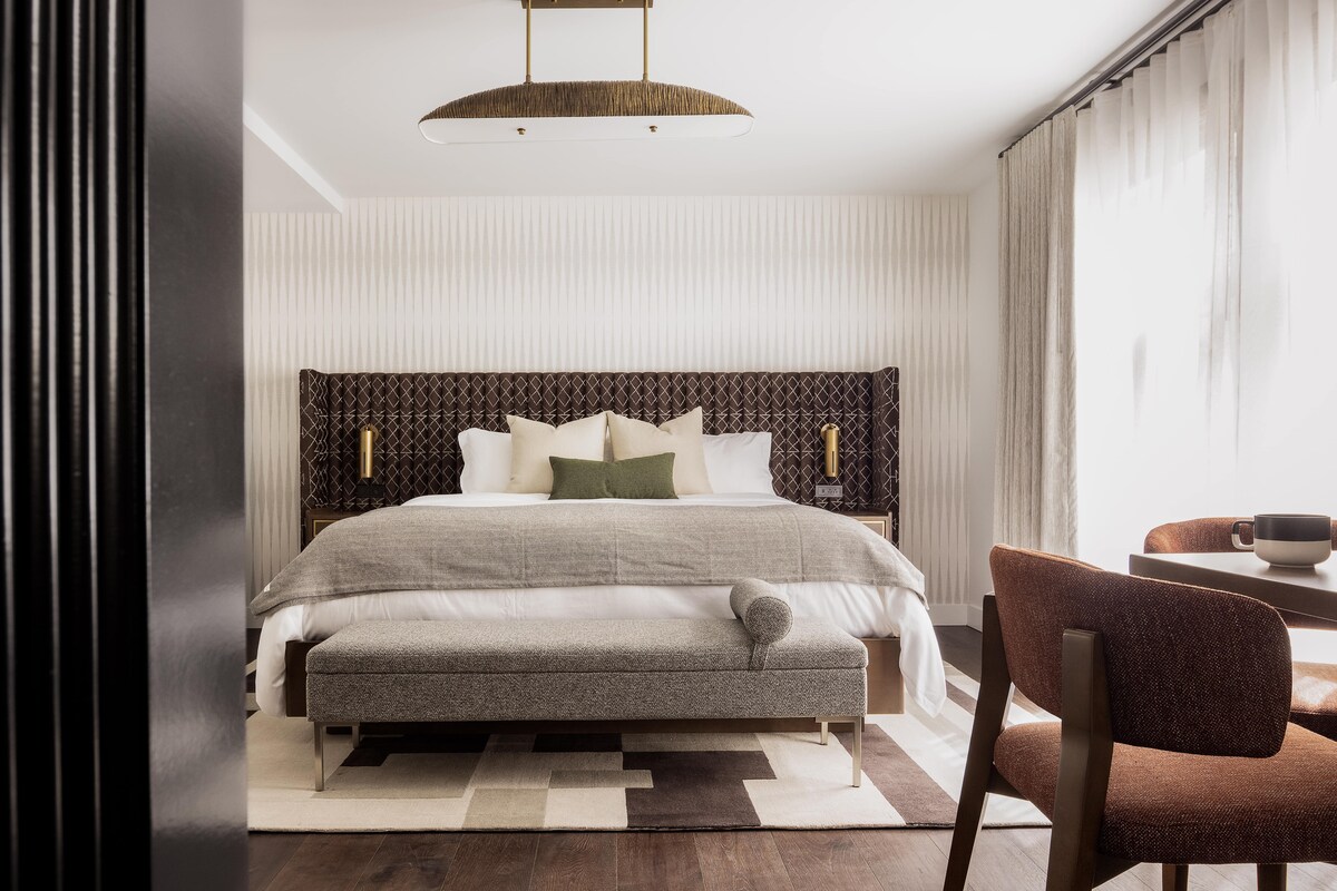 Discover our newly reimagined guest rooms at Guesthouse, Hotel at La Valle. Each room features a comfortable king bed, work table, accent chair, and a refrigerator for added convenience. Enjoy the refreshing San Diego breeze with sliding doors and a ceiling fan in every room. Experience a relaxing stay designed to let you fully embrace the city’s idyllic climate.