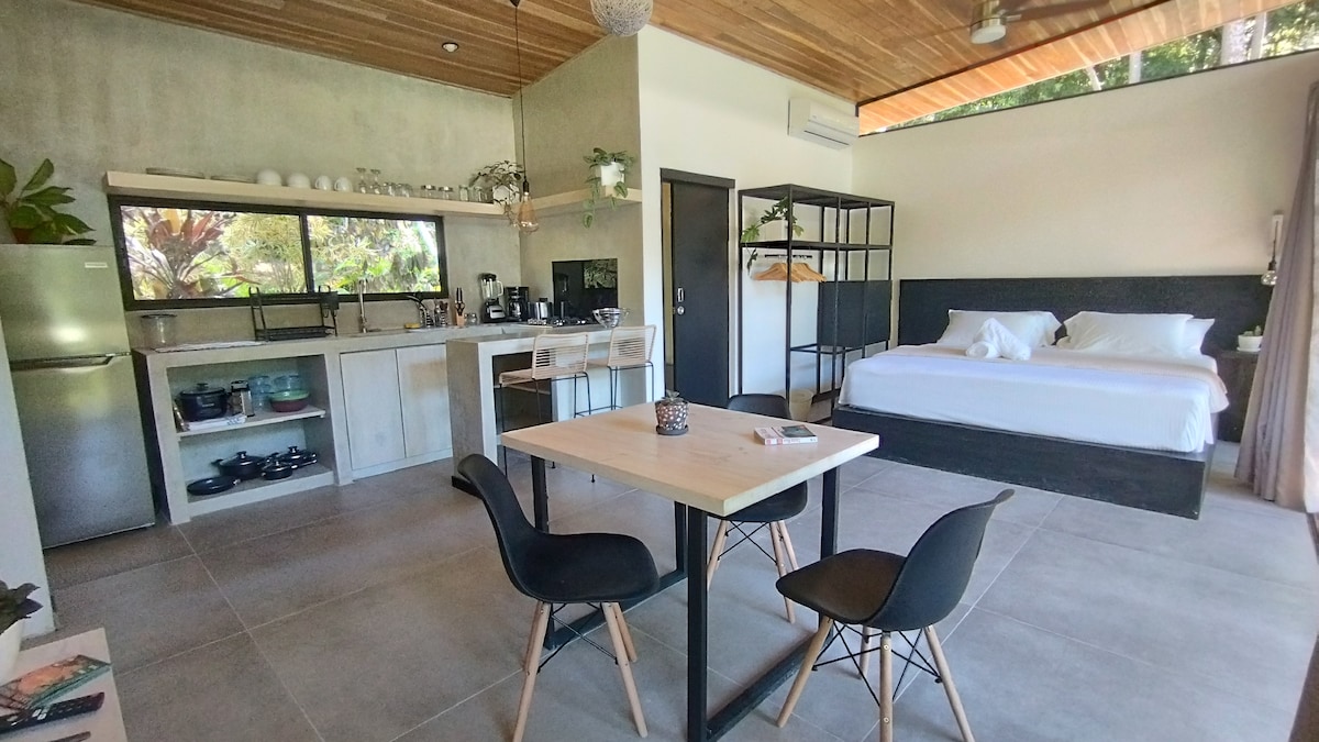 MODERNES STUDIO/ VILLA IM LUXUSSTIL IN SANTA TERESA🌴🏄 Suchen Sie Luxus und Komfort in dieser voll ausgestatteten privaten Studioeinheit/Villa, die in den Dschungel eingebettet ist, nur einen kurzen Spaziergang von Santa Teresas Surf-, Essens- und Nachtleben entfernt. 💦Entspannen Sie sich in der Gemeinschaftslounge mit Pool 🏝️2 Gehminuten vom Strand entfernt 🍽️Frische Mahlzeiten in der Außenküche 🚗Geschlossener und privater zugewiesener Parkplatz 📍Zentrale und ruhige Lage 💪Unterstützende & leidenschaftliche Mitarbeiter Buche noch heute dein unvergessliches Erlebnis! ☀️