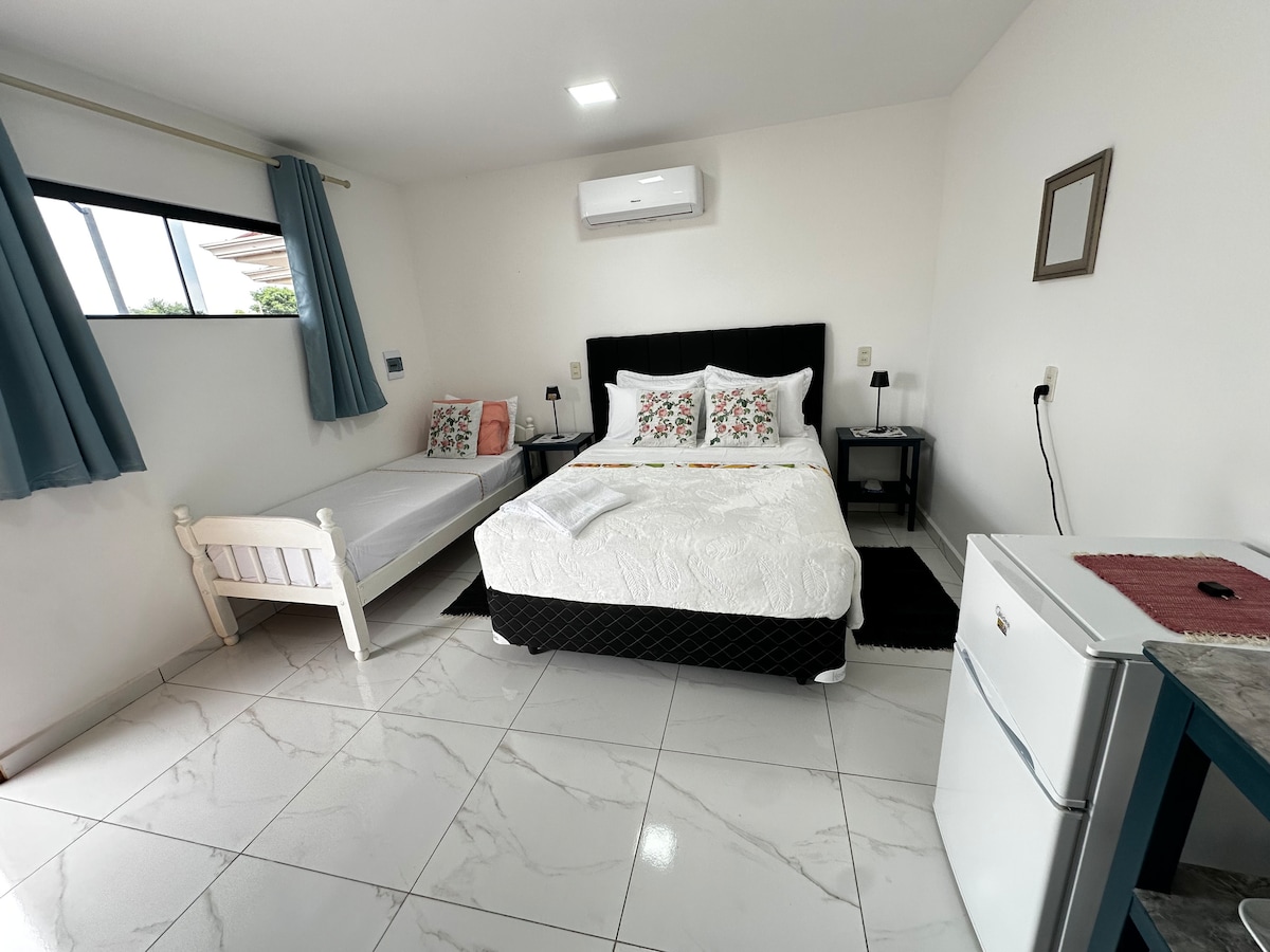 Departamento con 3 habitaciones, sofá-cama, cuatro baños, cocina equipada con placas y horno, heladera nueva, lavadero con lavarropas y secarropas nueva, sala de estar cerrada con vidrio y terraza con parrilla. Cuenta también con estacionamiento cerrado y decorado, para 3 autos. El estacionamiento es ideal también para reuniones con dos mesas y 30 sillas. Departamento completamente amoblado y muy elegante. Todas las habitaciones y la sala comedor tienen acondicionador de aire. Televisor de 55