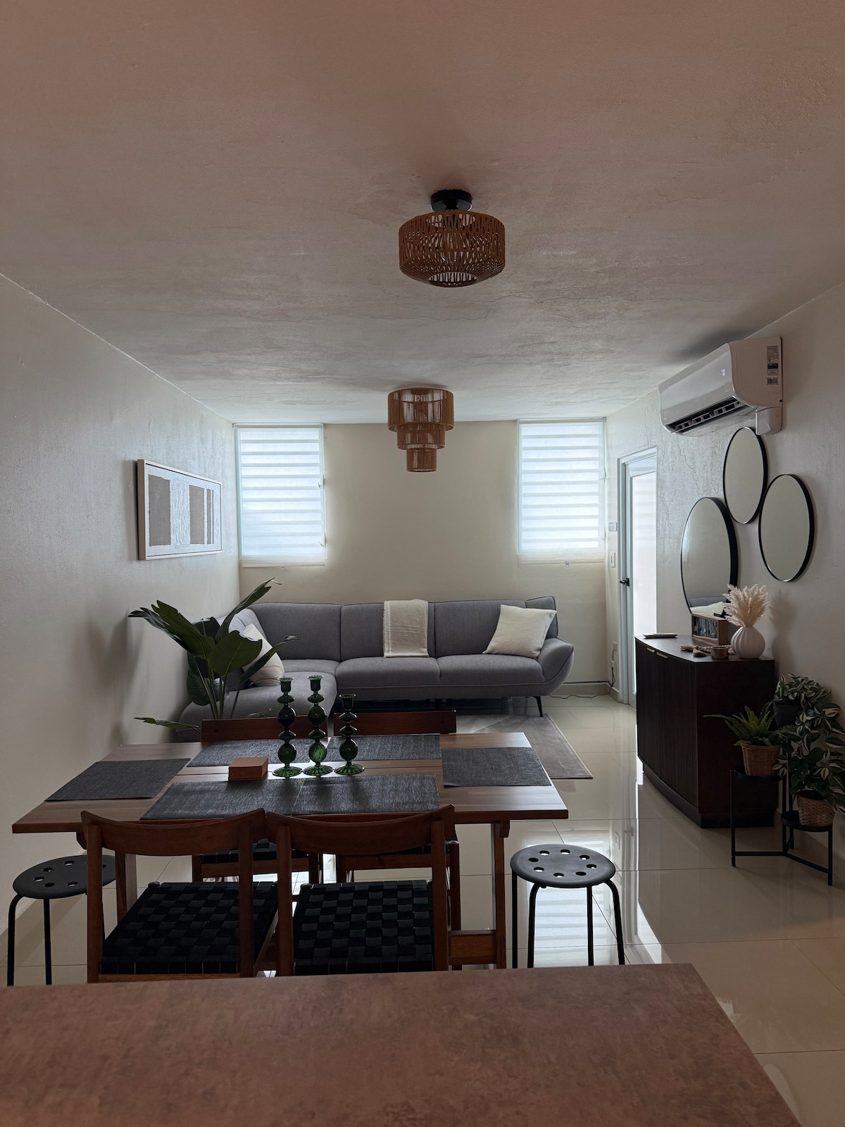 Schöne und moderne Unterkunft, perfekt für ein Paar oder eine Gruppe von vier Personen. Strategisch günstig gelegen, fünf Minuten vom Flughafen und 10 Minuten von San Juan entfernt. Komm nach Puerto Rico und genieße die Strände, die Menschen und vieles mehr. Die Wohnung besteht aus einem Wohnzimmer mit einem Queensize-Schlafsofa, einem schönen Zimmer mit einem Queensize-Bett, zwei Klimaanlagen, zwei Fernsehern und einer schönen, modernen Küche mit allen Utensilien zum Kochen, einem privaten Parkplatz und einem Balkon zum Teilen mit deiner Familie.