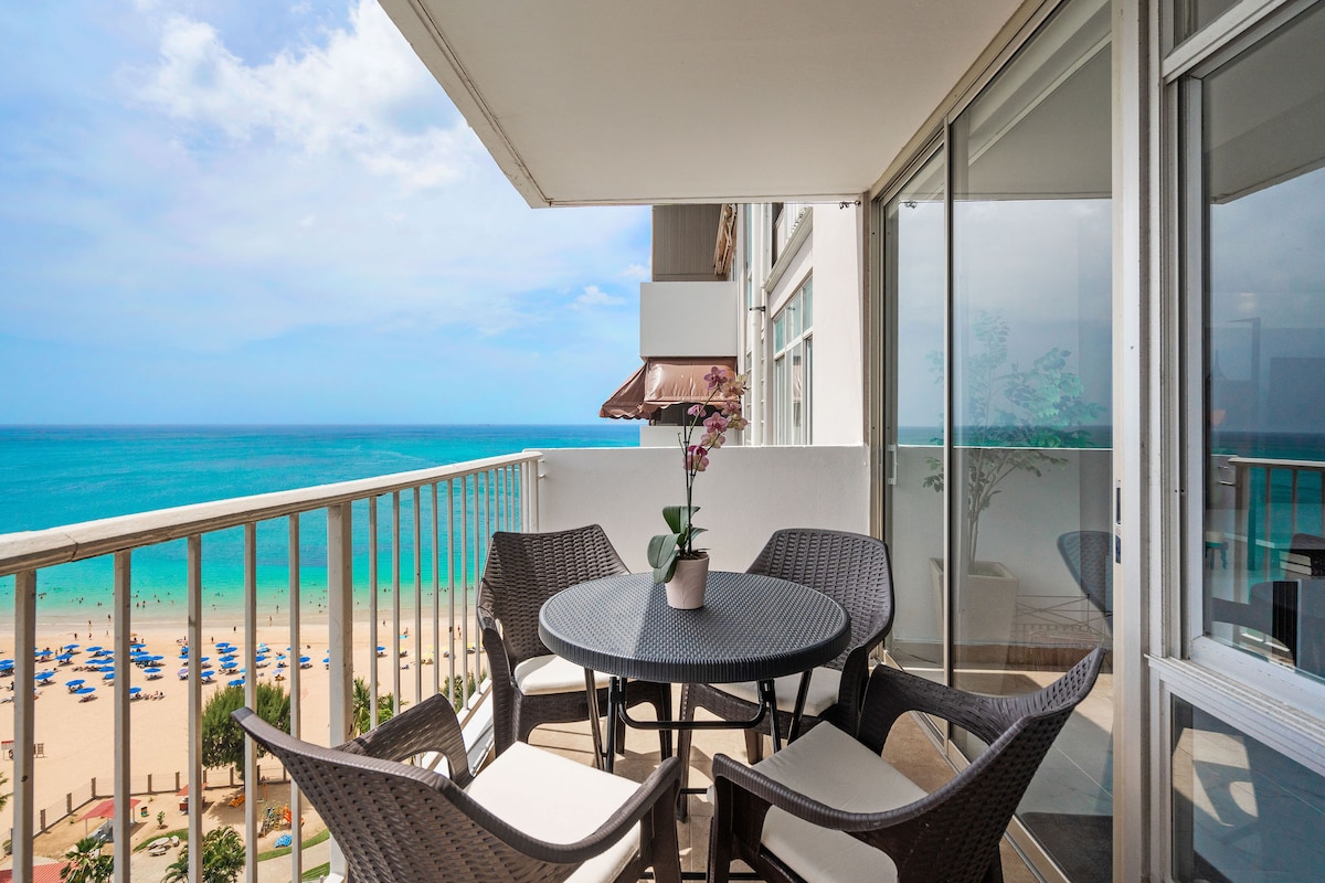 Enjoy million-dollar ocean views from this 14th-floor One Bedroom, just 5 minutes from SJU Airport ✈️ and steps from the beach 🏝️. Fully equipped for your stay with a king bed, pull-out sofa, and kitchen 👩🍳. Self check-in anytime after 3 PM, one free parking 🅿️ spot, and access to paid laundry 🧺 machines. Free luggage storage 🧳 before check-in/after check-out. A 24/7 supermarket is 5 minutes away. **NOTE: Pool is closed** Book your Puerto Rico 🇵🇷 escape today! ☺️